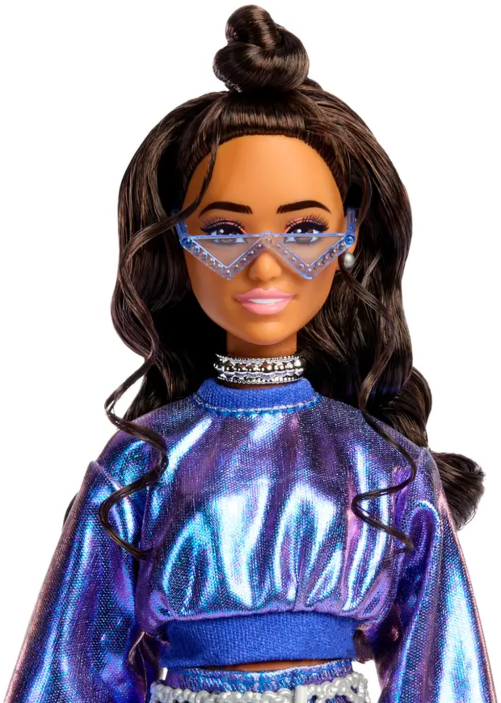 Izkušnenj v jeziku slovenščina za izdelek Barbie Modna lutka #7 v modrem kovinskem zgornjem delu in krilu