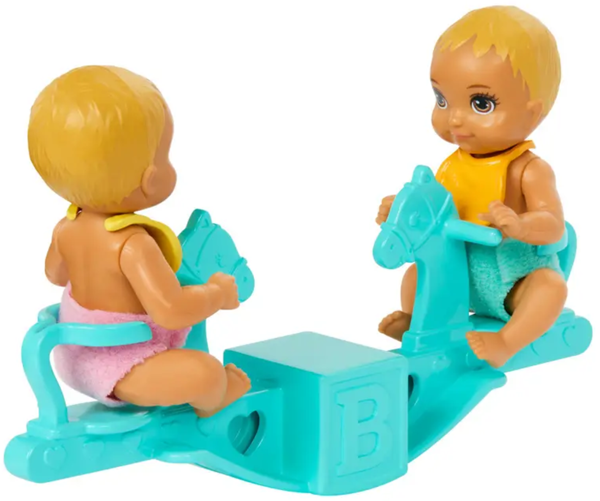 S tem čudovitim igralnim kompletom lahko otroci uživajo v dvojni zabavi varstva otrok! Skipper, Barbieina mlajša sestra, skrbi za dva čudovita dojenčka s snemljivimi plenicami in številnimi možnostmi za igro.