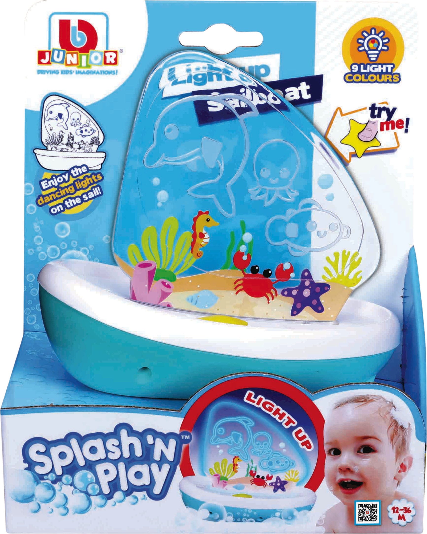 Z jadrnico Splash’N Play Light Up Sailboat znamke BBJunior postane vaše naslednje kopanje barvit svetlobni šov! Barvit čoln prinese čaroben sijaj v kopalno kad ali bazen. Takoj ko pritisnete gumb na krovu, začne prosojno jadro žareti v spektakularnih barvah.