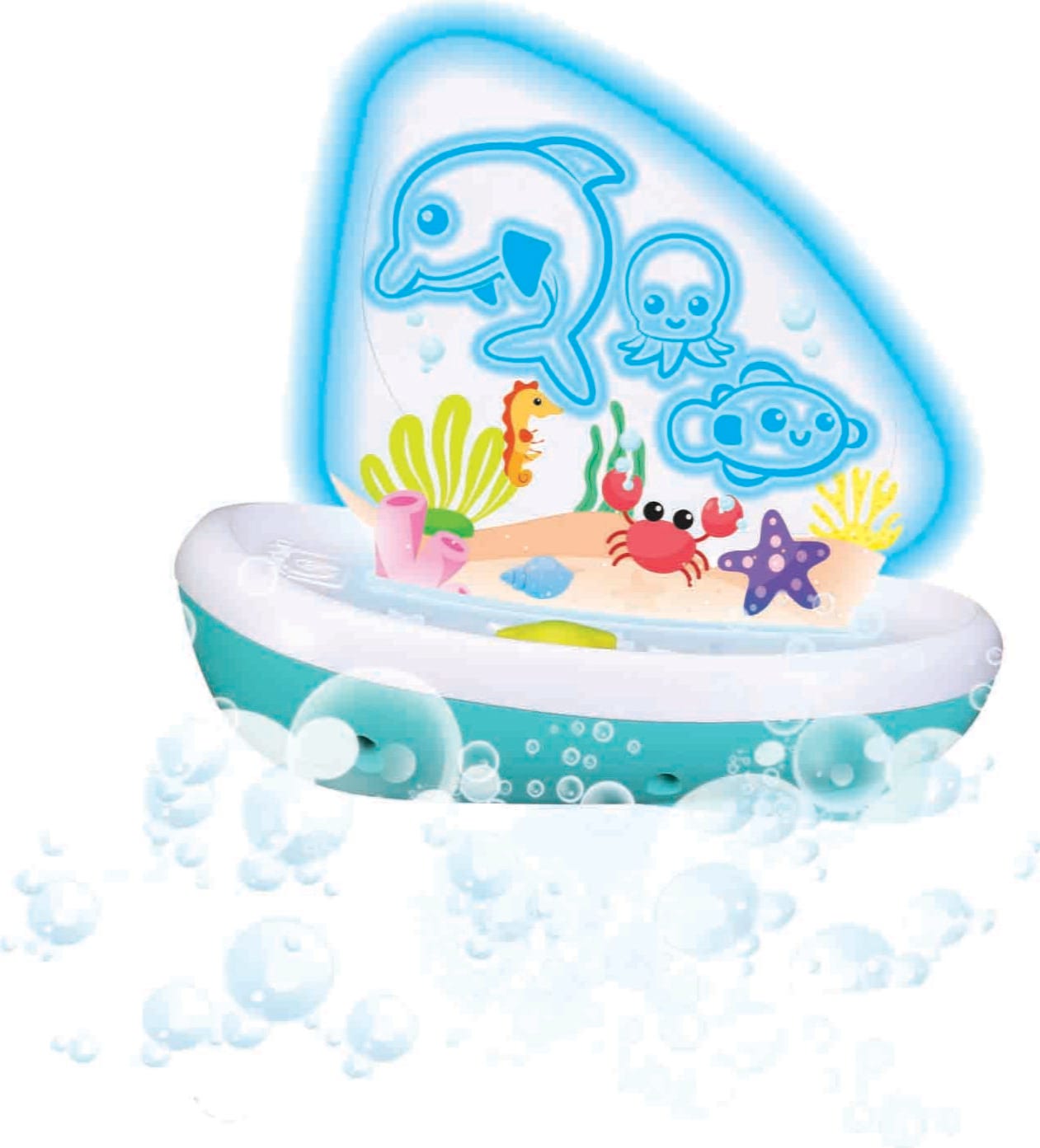 Skupaj devet različnih barv osvetljuje jadro in popolno poudari prikupne podvodne živali. Pri tej vizualni izkušnji so zaposleni čuti, medtem ko igrivo spoznavate različne morske prebivalce. Ker so baterije že priložene, se lahko vaše svetleče raziskovalno potovanje na vodi takoj začne!