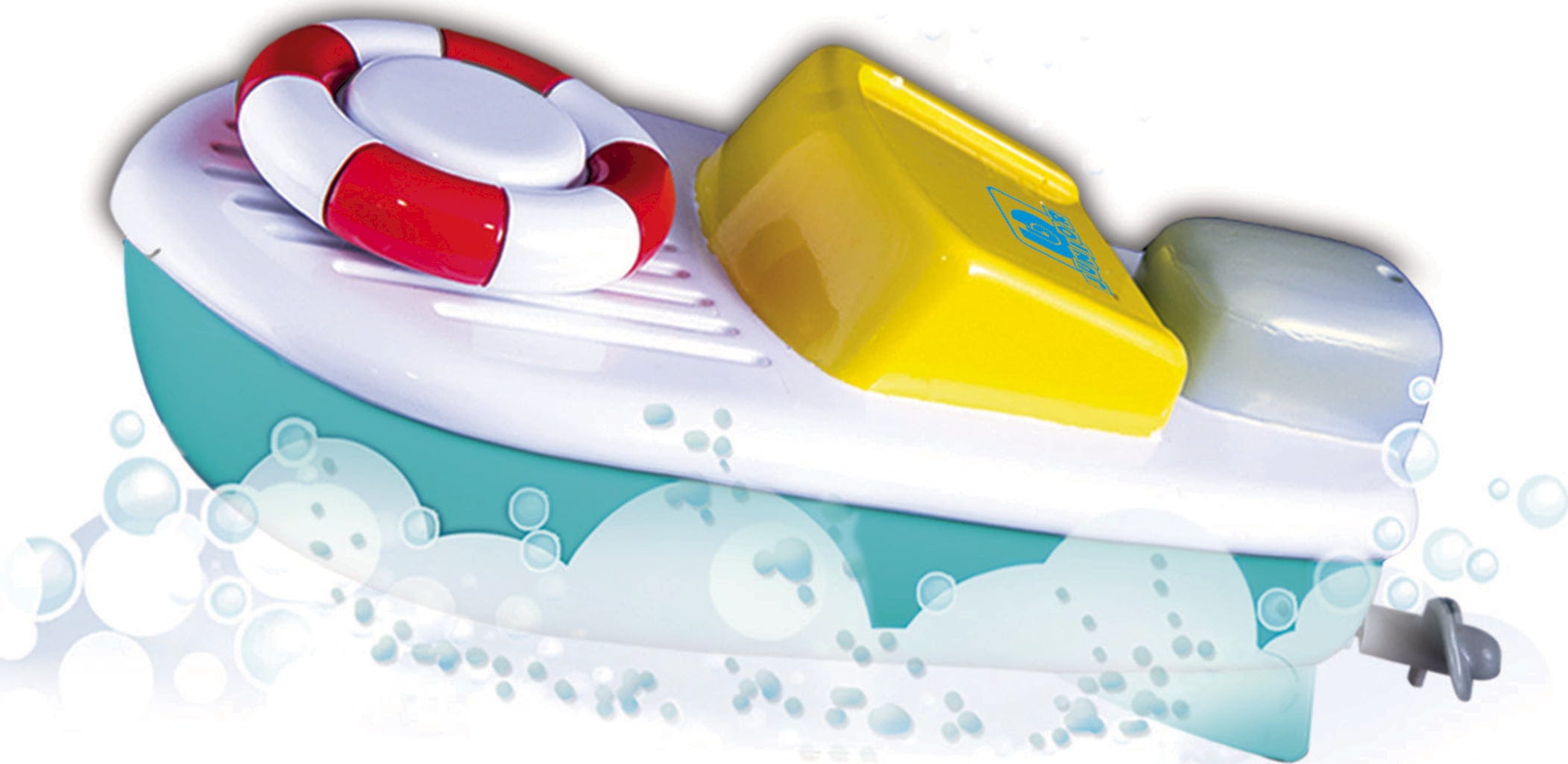 Glavna prednost: za plovbo ne potrebujete baterij. Z vrtenjem rdeče-belega rešilnega obroča navijete mehanizem in čoln že samodejno zapluje. Okolju prijazna vodna zabava, ki male kapitane vabi k osvajanju valov!