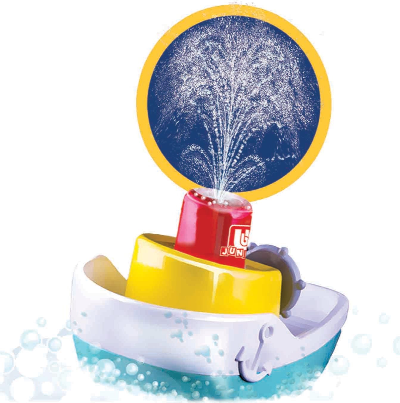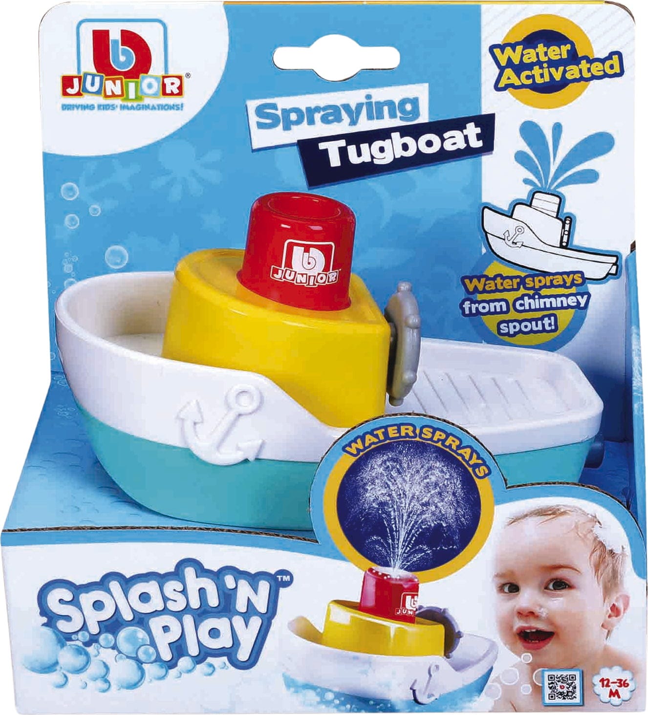 Z vlečnim čolnom Splash’N Play Spraying Tugboat znamke BBJunior se v vašo kopalno kad vseli obilo akcije! Takoj ko majhen čoln postavite na vodno gladino, začne delovati: integrirana funkcija pršenja vode se aktivira sama od sebe in poskrbi za čudovito fontano.