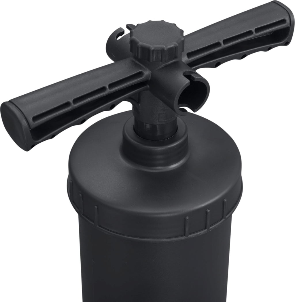 Ta črpalka je močna naprava, ki z velikostjo 37 cm in prostornino hoda 2,8 l zagotavlja močan pretok zraka. Posebnost: zrak črpa tako pri vleku navzgor kot pri potisku navzdol. Tako prihranite dragocen čas in imate svoje napihljive izdelke pripravljene v hipu!