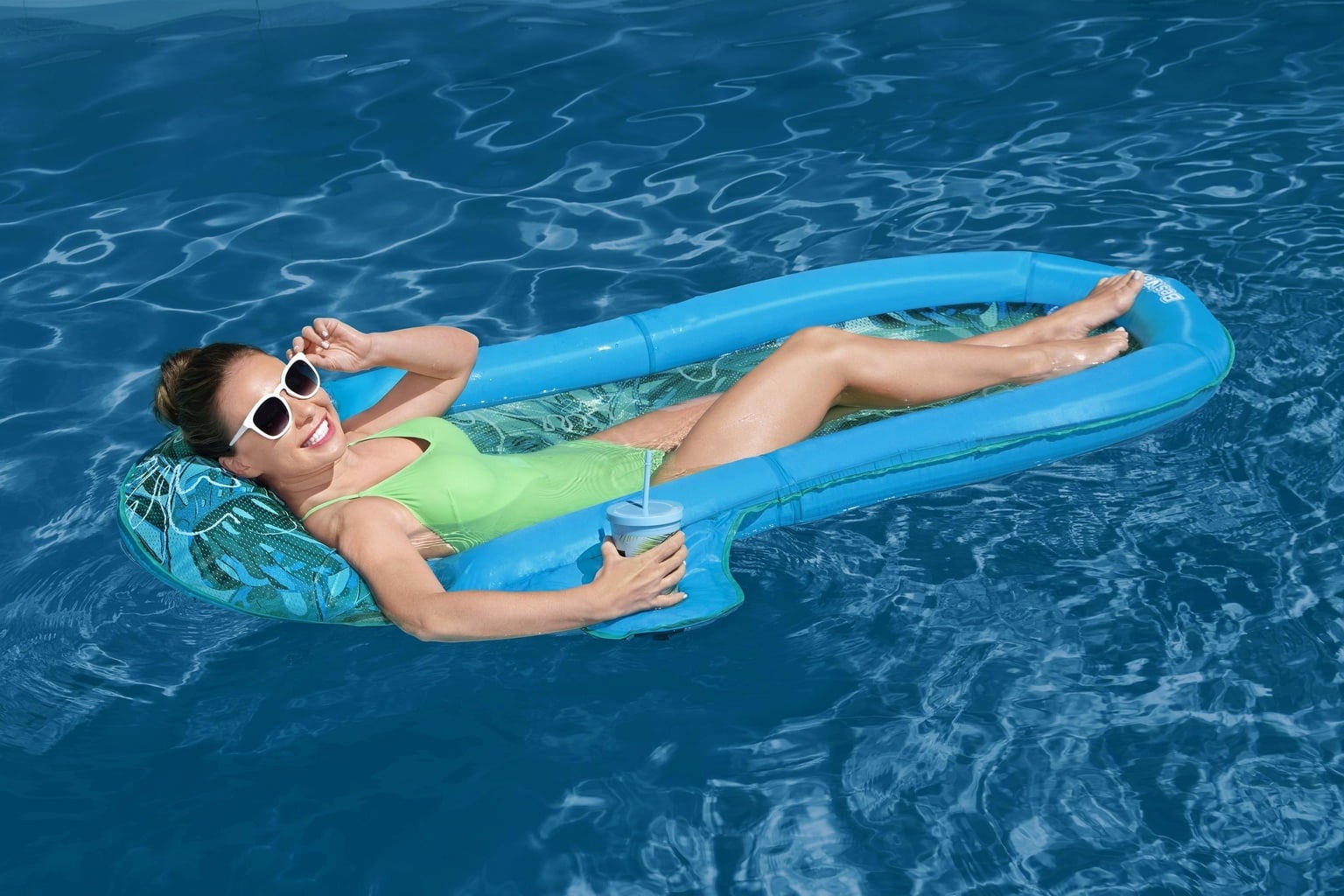 Z napihljivo blazino Flex 'n Fold Bestway boste nežno plavali po vodni površini in uživali v osvežilni hladni vodi zahvaljujoč mrežasti ComfortCool ležiščni površini, ki omogoča prehajanje vode! Udoben in trpežen tekstilni material zagotavlja prijetno ležanje, medtem ko dodatna mehka opora za glavo in vgrajeno držalo za pijačo povečata udobje.