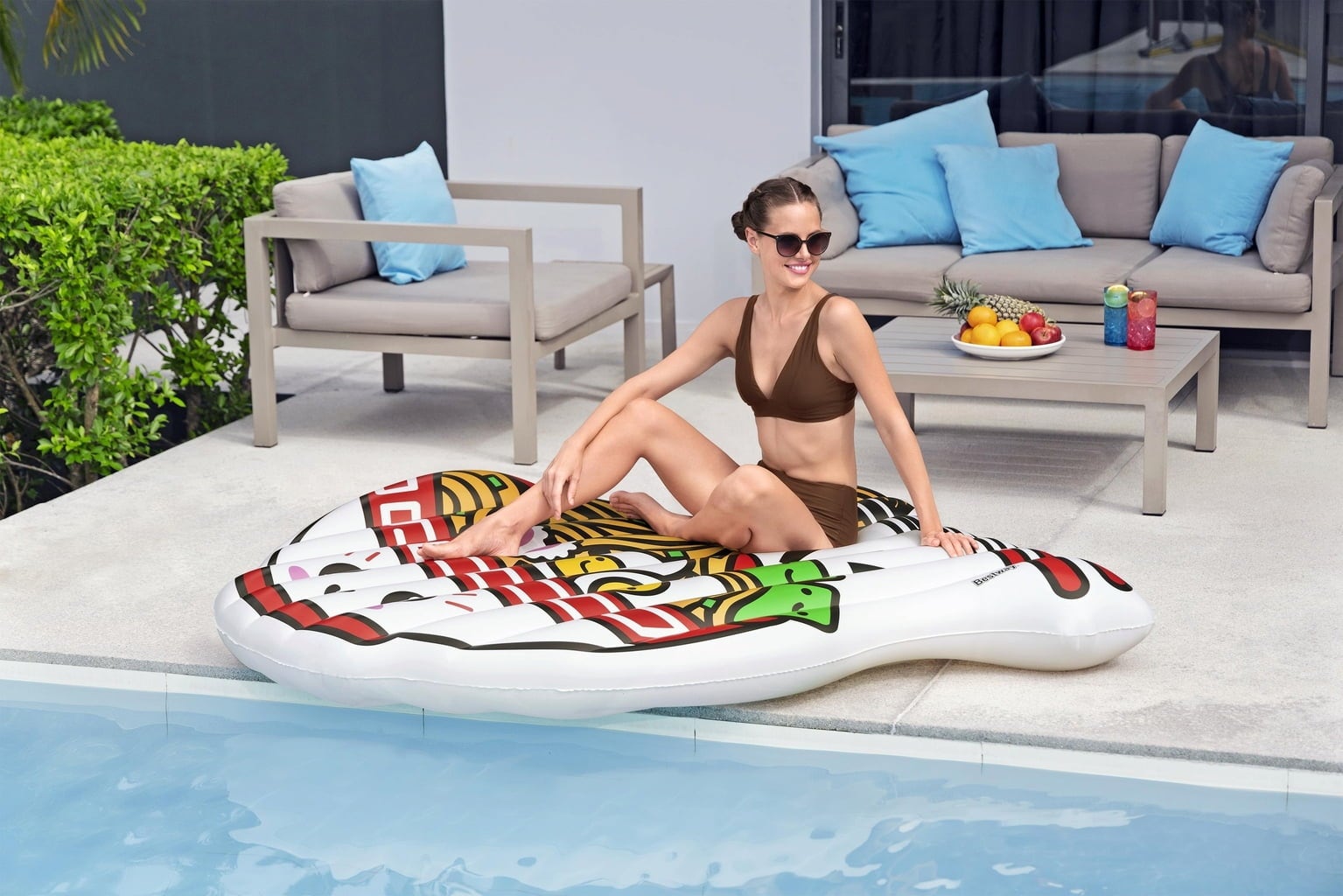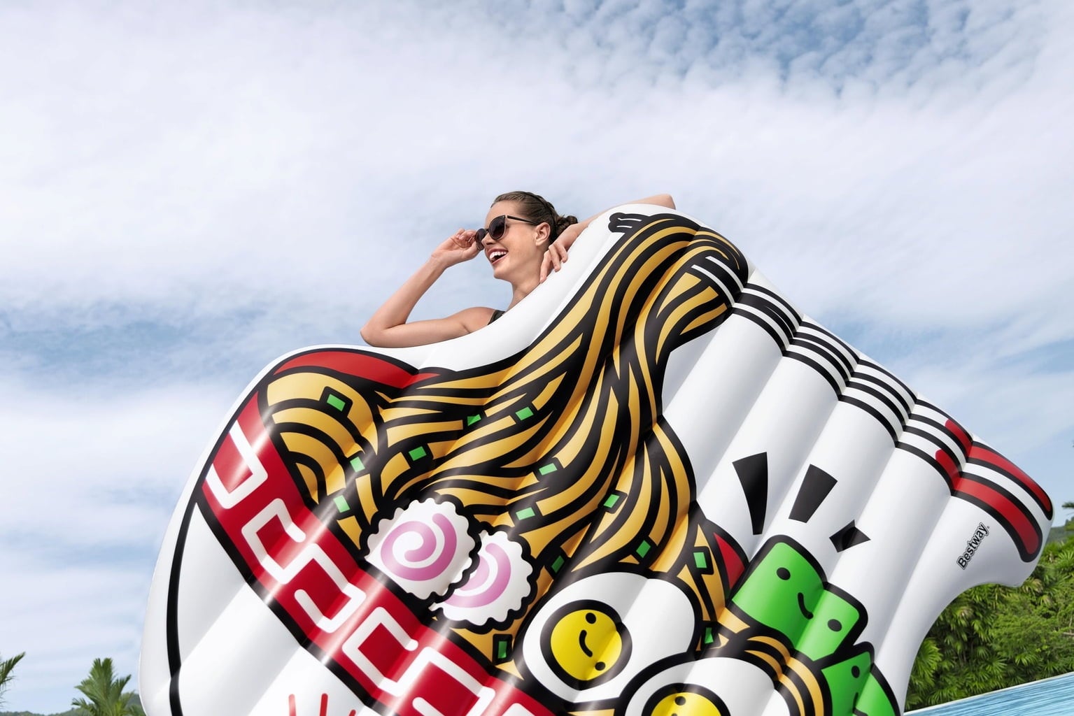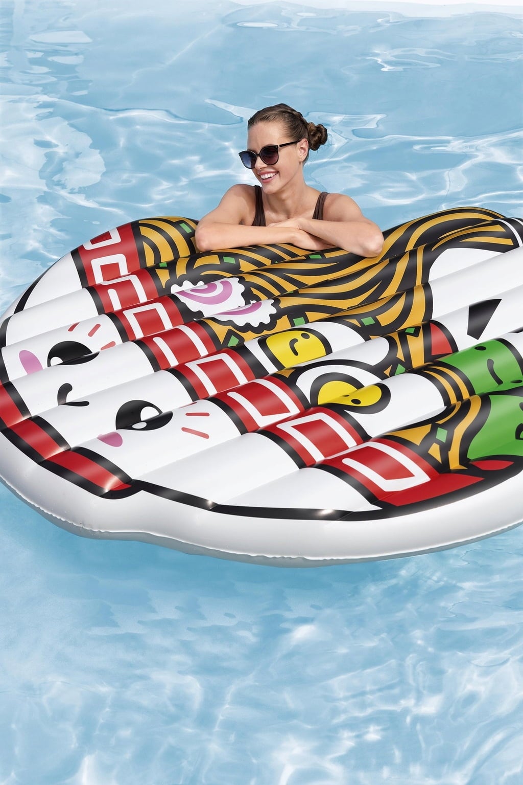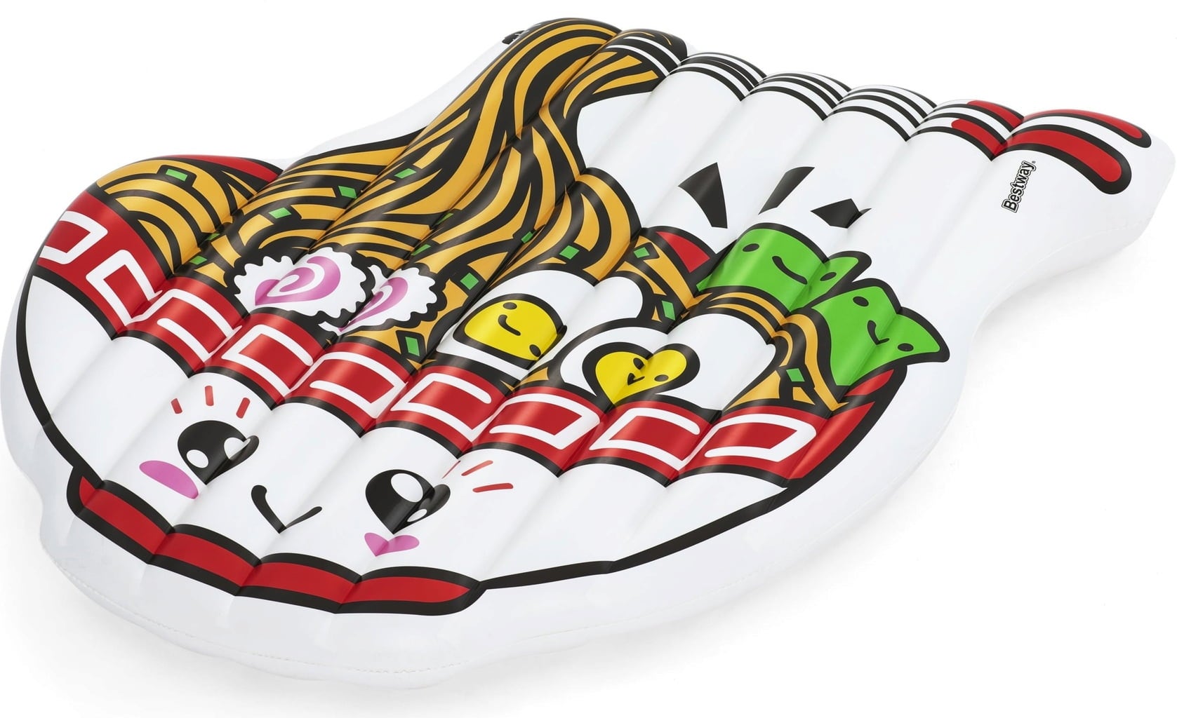 Zgrabite napihljivo blazino Bestway v obliki ramen sklede in doživite povsem novo vodno izkušnjo! S svojimi prostornimi merami 176 x 155 x 24 cm vam nudi obilo prostora za sprostitev na plaži ali v bazenu. Njena edinstvena oblika pa bo zagotovo pritegnila poglede!