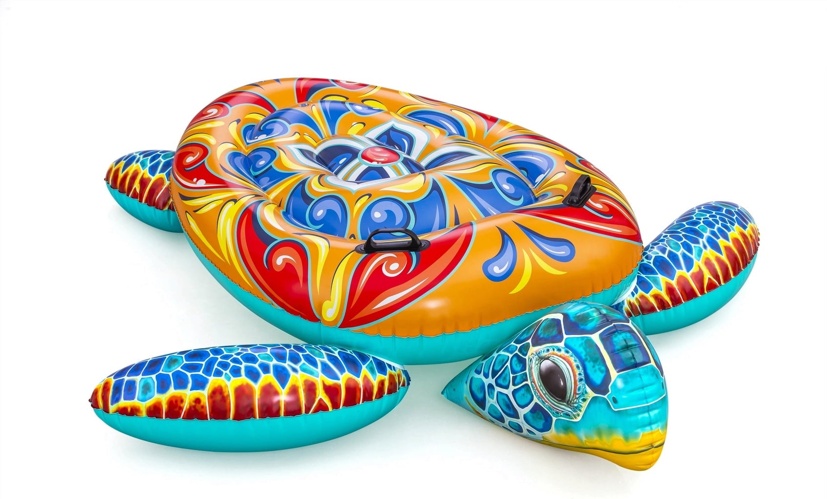Sanjate o sončnih obalah in pridihu sredozemskega pridiha v vašem bazenu? Potem si priskrbite to napihljivo želvo v čarobnem dizajnu majolike! Njena največja nosilnost je 85 kg in ponuja veliko prostora za popoln počitniški občutek!