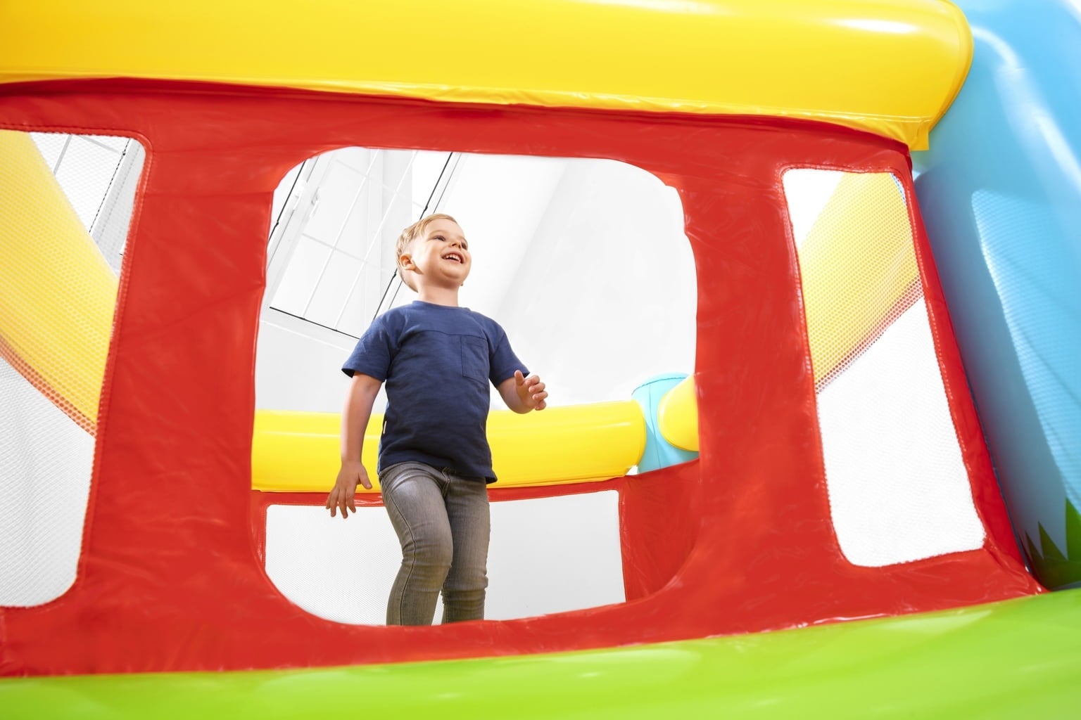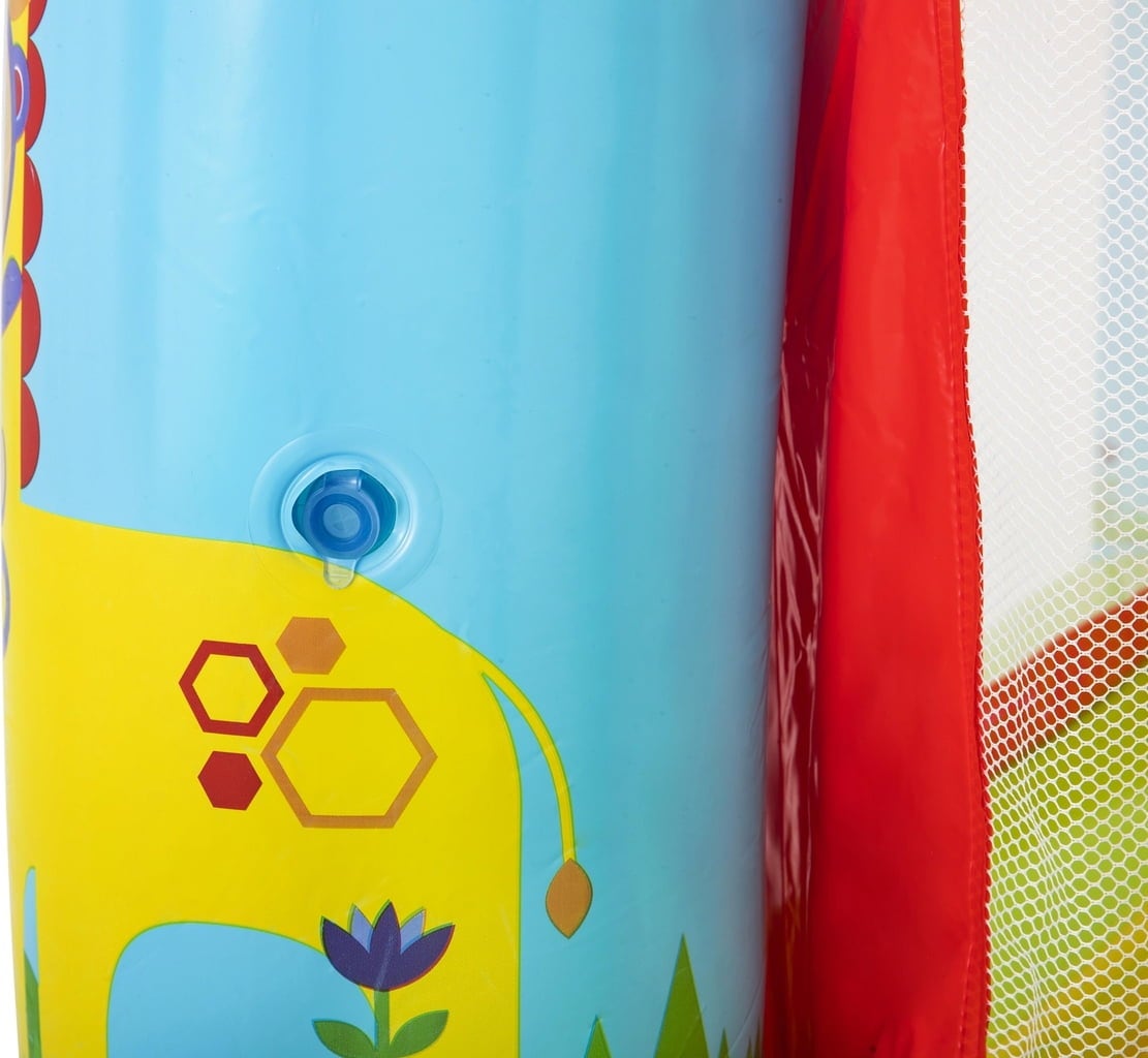 Ker je sestavljen iz ene same zračne komore, je pripravljen za uporabo v trenutku - preprosto ga napihnite - ni vam treba dolgočasno sestavljati posameznih delov! Praktične mrežaste stranske stene zagotavljajo, da so vaši otroci varni med poskakovanjem.