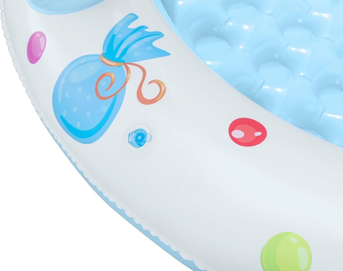 Napihljiva sončna streha UV Careful™ zagotavlja prijetno senco in tudi ščiti vaše malčke pred soncem. In da je zabava še večja, mehka, napihljiva tla zagotavljajo dodatno udobje, tako da se lahko vaši otroci igrajo po mili volji! In če pride do majhne nesreče, so priloženi praktični obliži za popravilo.