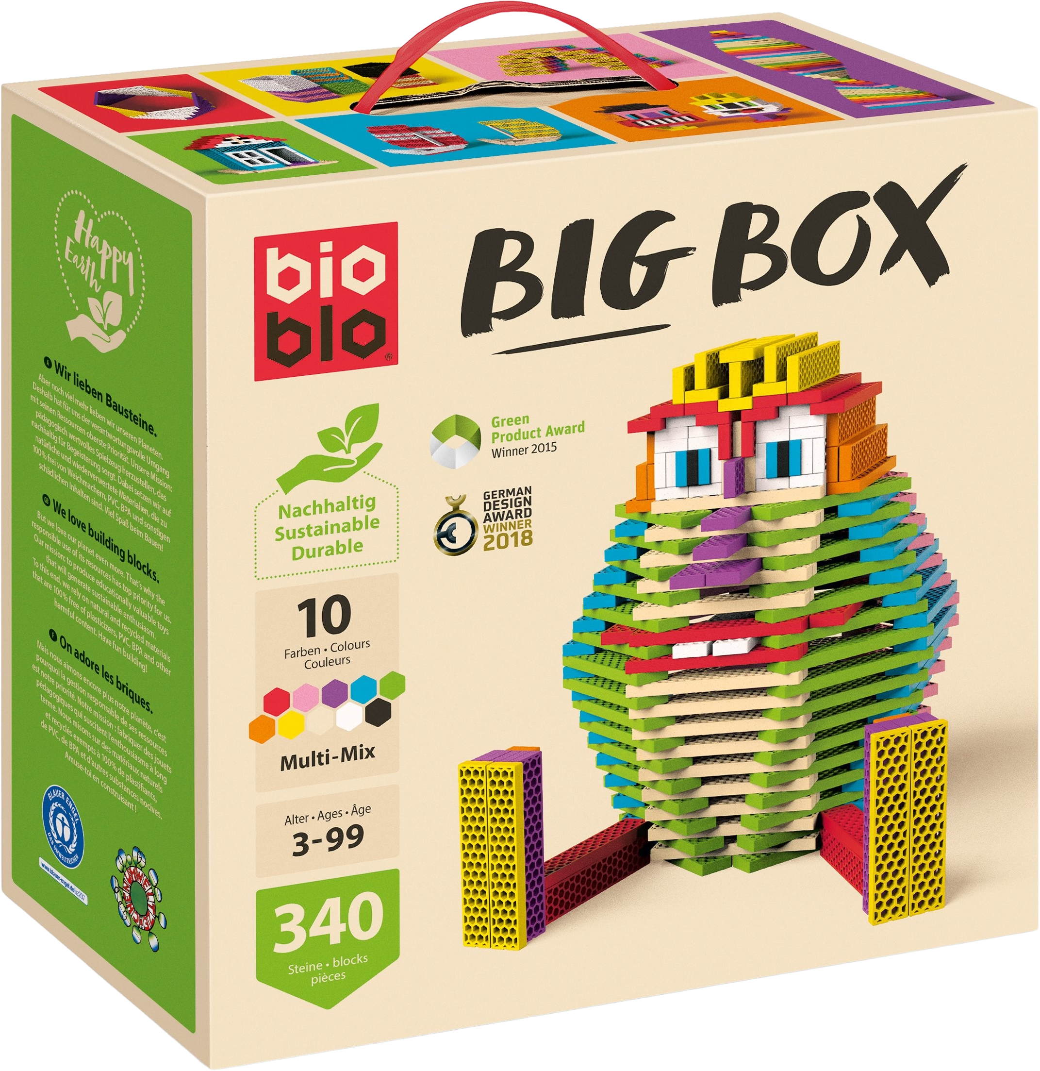 Big Box "Multi-Mix" podjetja Bioblo je kot nalašč za vse, ki želijo biti resnično ustvarjalni. S 340 gradniki v desetih barvah lahko uresničite velike strukture in domiselne projekte - od jadrnic, pošasti in avtomobilov do vesoljskih ladij in nebotičnikov. Idealno za otroške sobe, šole ali skupne gradbene projekte s prijatelji in družino. Ustvarjalnost, zabava in trajnostna kakovost v eni veliki škatli.