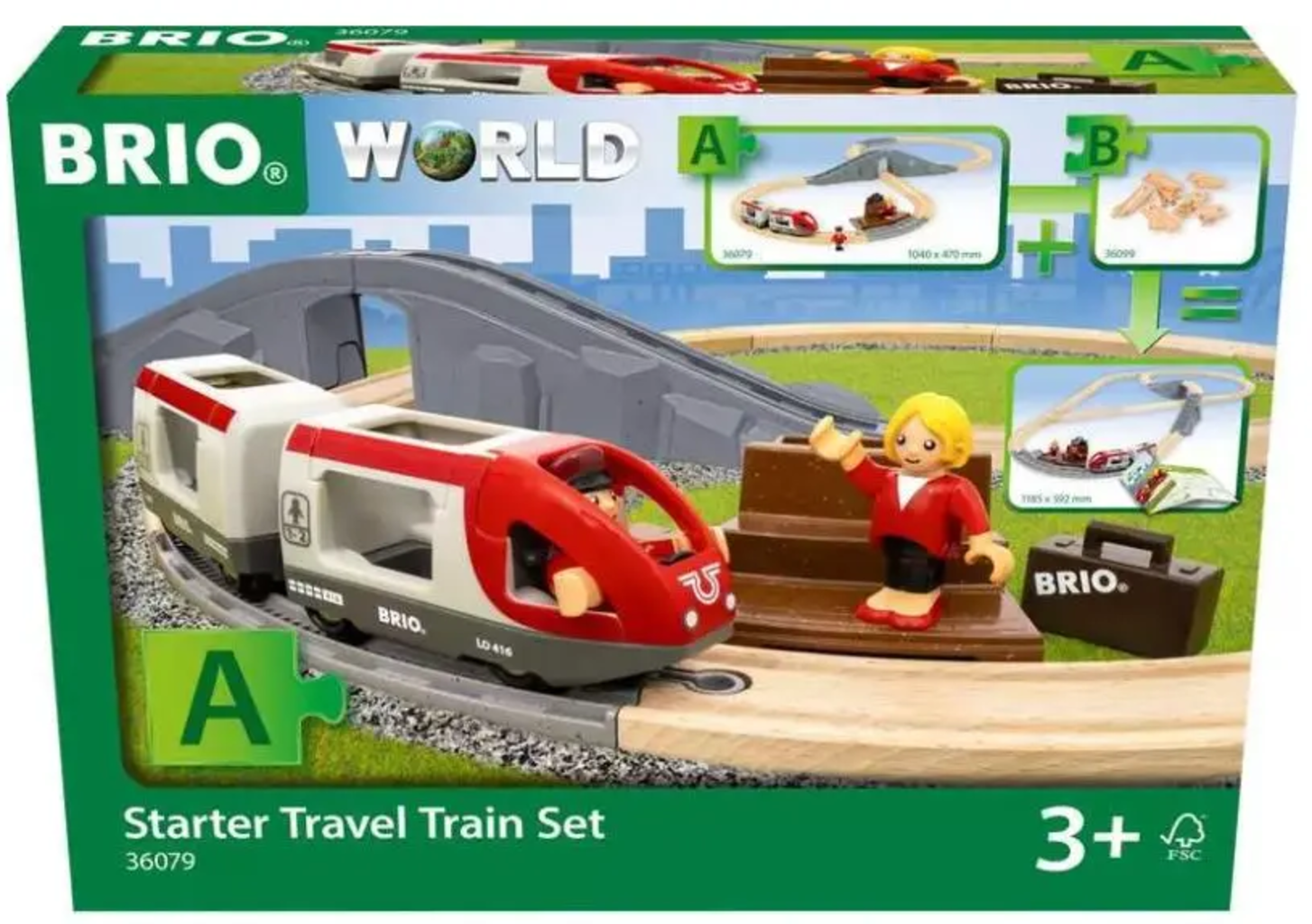 Z 22-delnim začetnim kompletom BRIO Train Starter Set A lahko otroci sestavijo svojo prvo železnico BRIO. Voznik pobere potnike na peronu, nato pa se začne pustolovščina na ikoničnih lesenih tirnicah. Popoln komplet za domišljijsko igro in prve izkušnje z BRIO svetom.