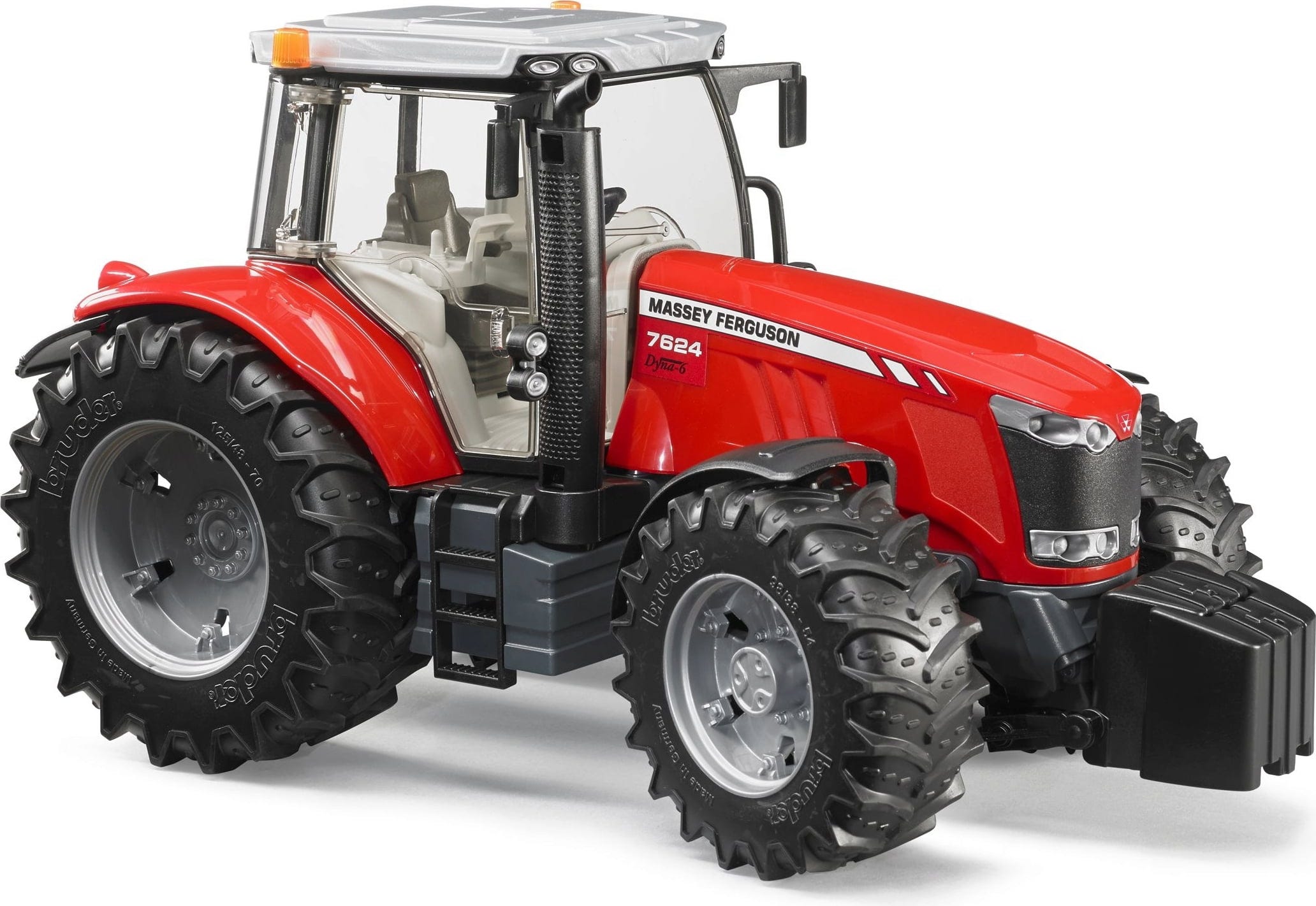 Massey Ferguson 7624 proizvajalca BRUDER je natančen traktor večkrat nagrajene serije MF-7600. Zastekljena kabina, funkcionalno krmiljenje in robustna nihajna os zagotavljajo realistično igro. Zaradi nastavka za sprednji nakladalnik in vlečne kljuke je traktor mogoče vsestransko kombinirati z dodatki BRUDER in je idealen za avtentično poustvarjanje vsakdana voznika traktorja.