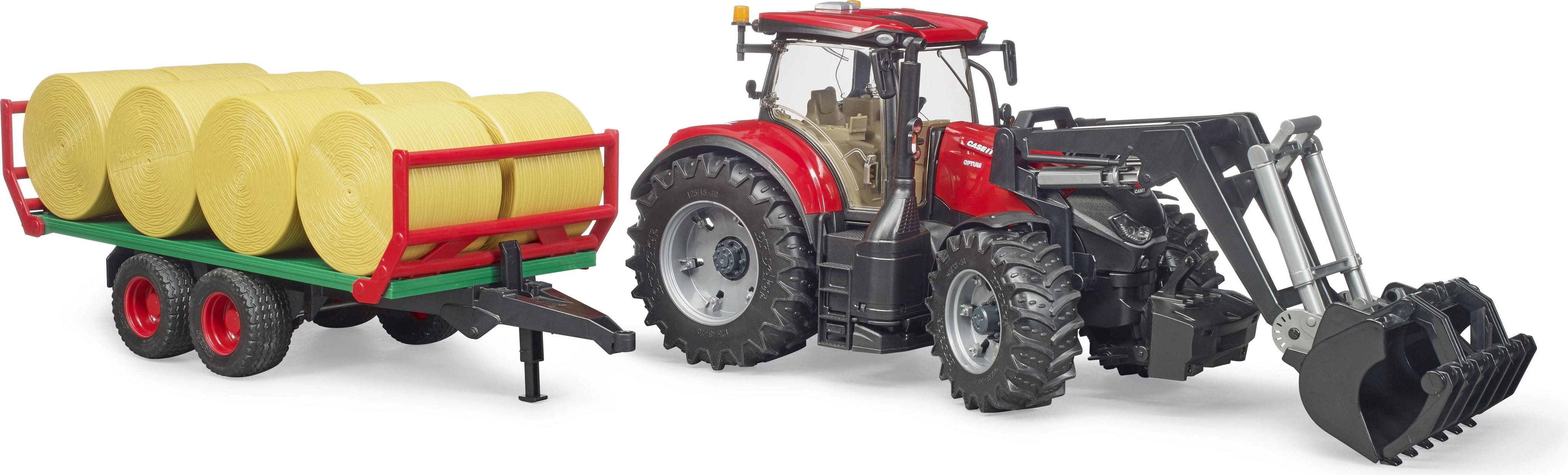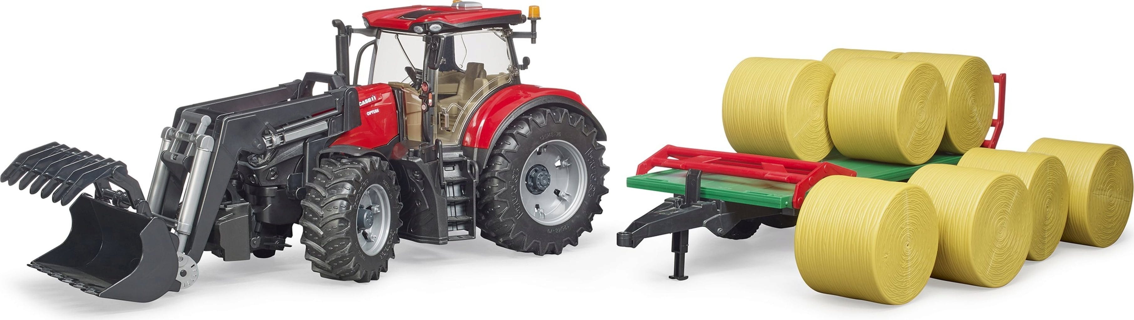 Case IH Optum 300CVX proizvajalca BRUDER je natančen traktorski komplet za jesenska dela. Popolnoma funkcionalen sprednji nakladalnik, snemljiva kolesa, nihajna os in v celoti zastekljena kabina poskrbijo za realistično igro. Priložena prikolica za prevoz bal ponuja prostor za 8 okroglih bal in se zlahka naloži zahvaljujoč zložljivim stebričkom. Skupaj s prikolicami serije Profi in kompletom figur bworld kmet lahko otroci realistično poustvarijo vsakdan na kmetiji.