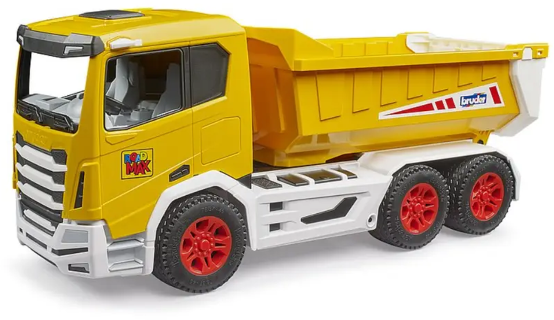 Tovornjak s prekucnikom ROADMAX znamke Bruder ima robustno ogrodje, nedrseče pnevmatike in vesel dizajn, ki vsako igro spremeni v pustolovščino. Tovornjak je še posebej robusten, enostaven za upravljanje in popoln za majhne roke. V peskovniku ali dnevni sobi zagotavlja varno, dolgotrajno in ustvarjalno zabavo med igro. Odličen spremljevalec za male graditelje.