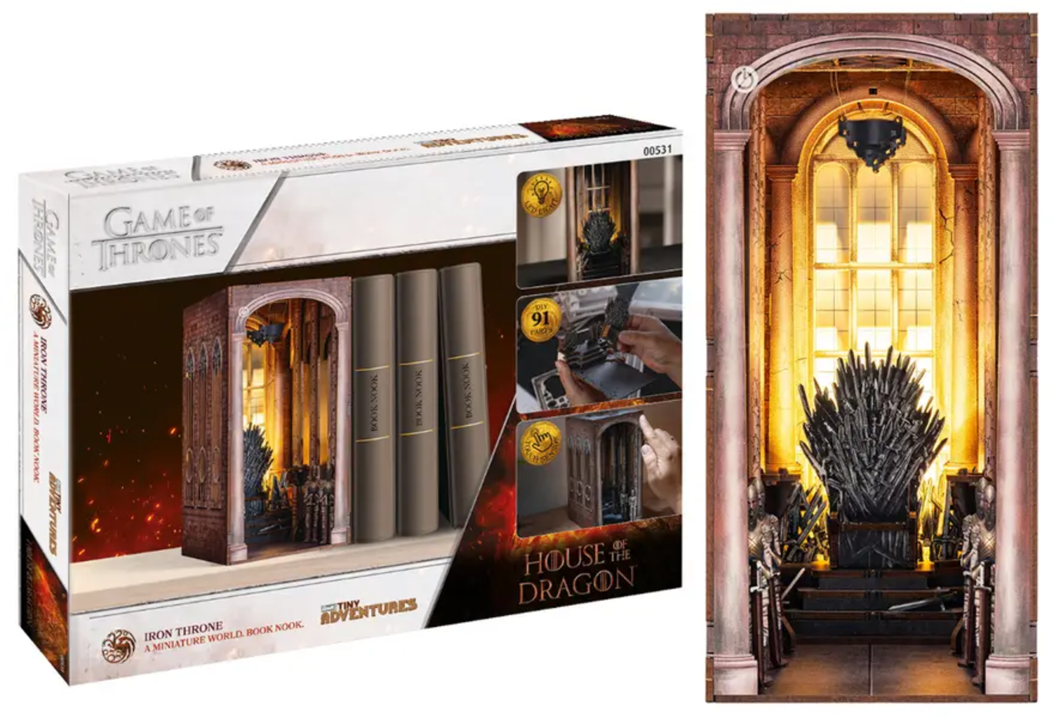 S tem podrobnim modelom prenesite svet Westerosa v svoj dom. Slavni železni prestol v miniaturni obliki postane impresiven knjižni kotiček in ustvari posebno vzdušje med vašimi knjigami. Vznemirljiv rokodelski projekt in elegantna dekoracija za ljubitelje Igre prestolov in modeliranja.