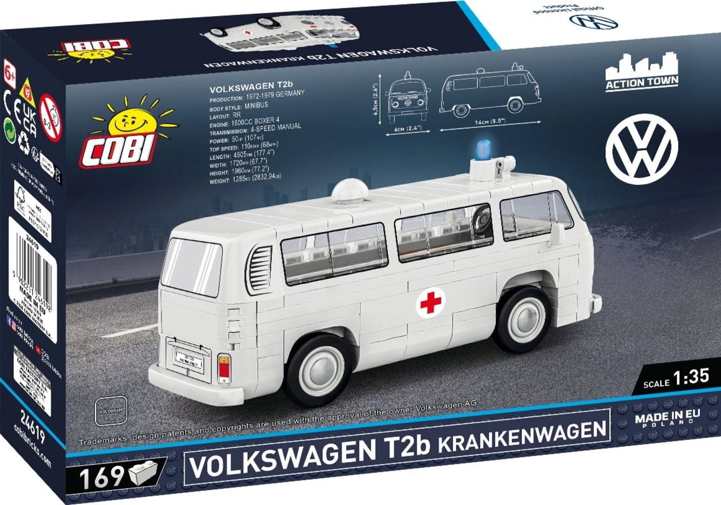 Ta COBI model popolnoma ujame ikoničen dizajn »Bullija«. Značilna rdeče-bela barva, svetlobni signali in pristni napisi poskrbijo, da je to reševalno vozilo prava paša za oči. Po zaslugi gumiranih koles in robustne konstrukcije model ni le lep zbirateljski kos, ampak je tudi pripravljen za akcijo v otroški sobi.