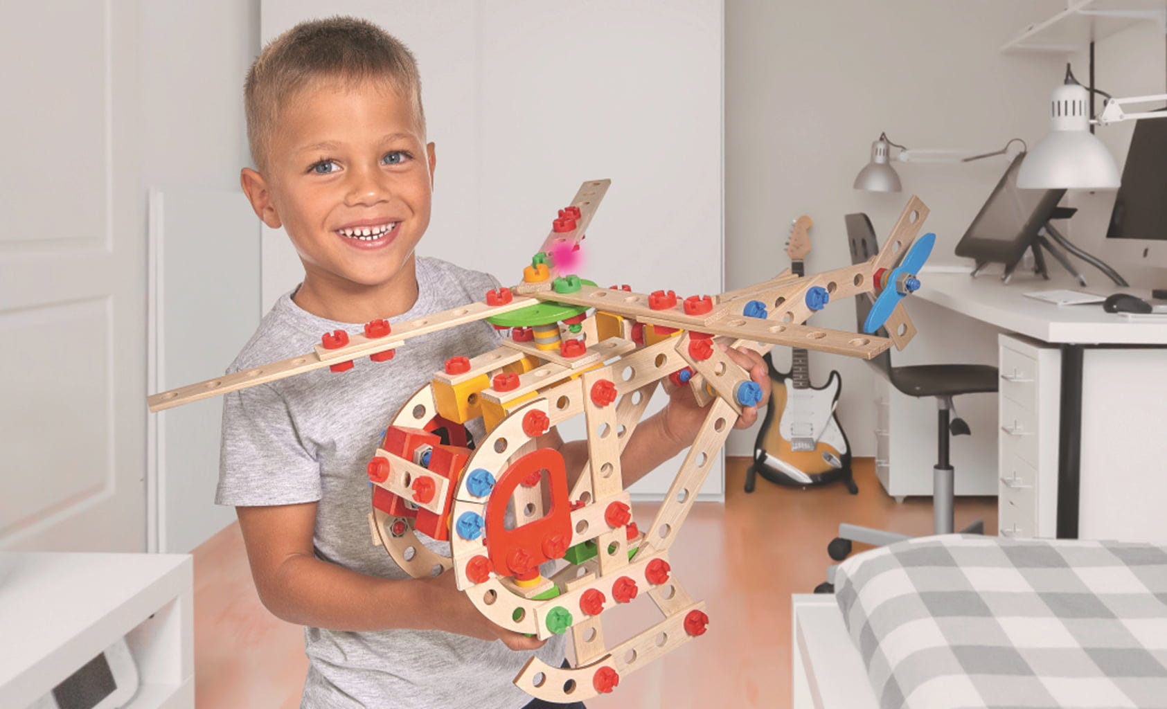 S tem obsežnim konstrukcijskim kompletom bodo mali gradbeniki zagotovo prišli na svoj račun. Iz 225 lesenih delov in povezovalnih elementov lahko po želji nastane eden od petih edinstvenih modelov, ki navdihujejo k poustvarjanju akcijskih prizorov. Tisti, ki pa raje brez navodil sledijo ustvarjalnosti, bodo med obsežnimi dodatki zagotovo našli nekaj zase.