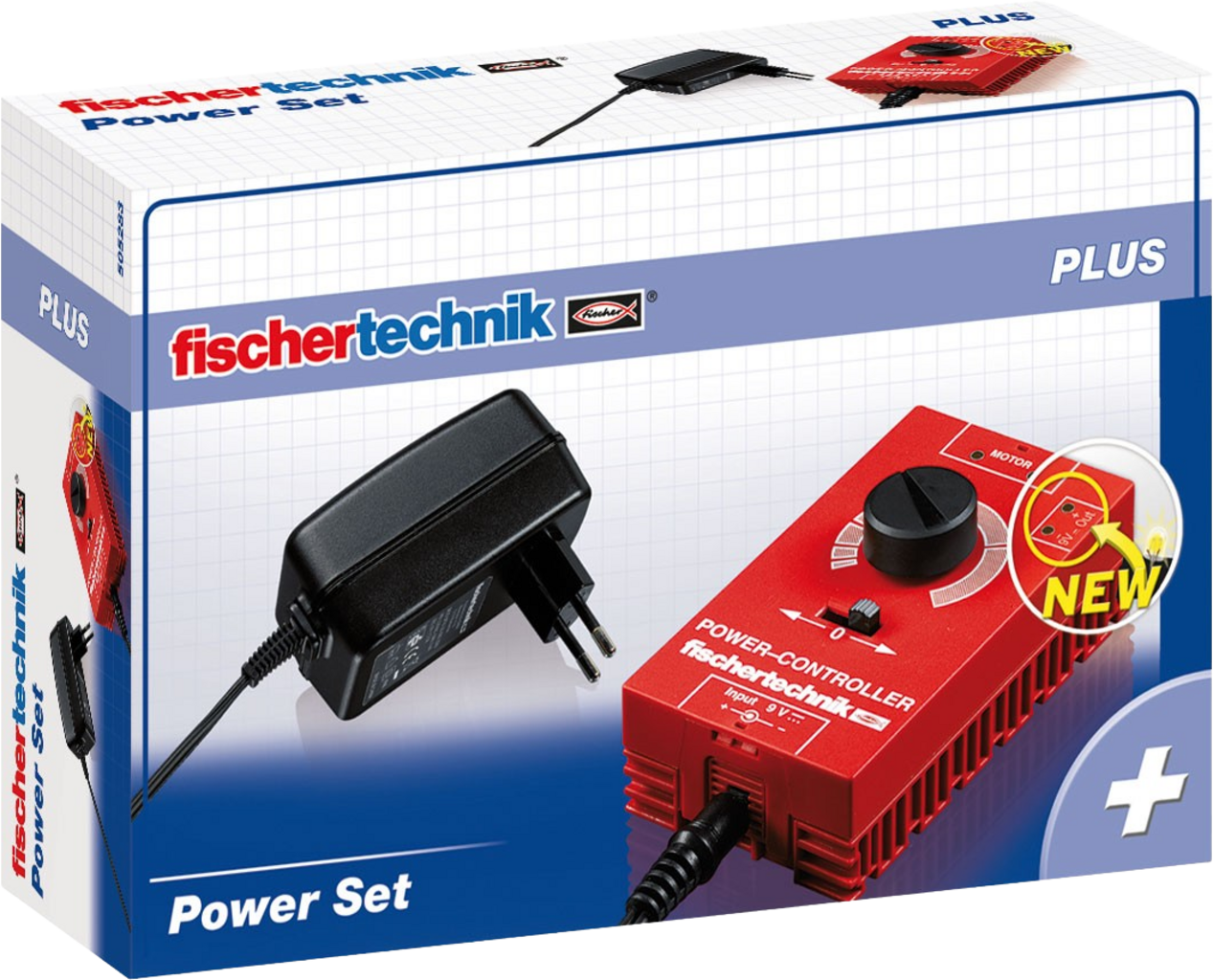 Napajalni komplet zagotavlja stabilno napajanje neposredno iz stenske vtičnice - idealno za vse stacionarne modele fischertechnik. Zahvaljujoč regulatorju moči lahko brezstopenjsko prilagajate izhodno moč in tako natančno nadzorujete gibe in funkcije.