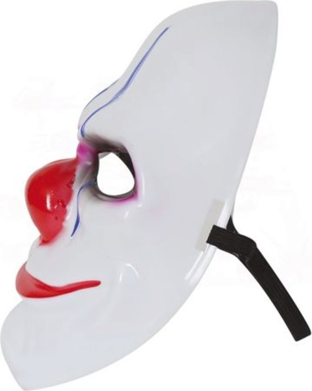 Ta maska je bistvenega pomena za vašo preobleko strašnega klovna. Raztegljiv gumijast trak zagotavlja dober oprijem.
