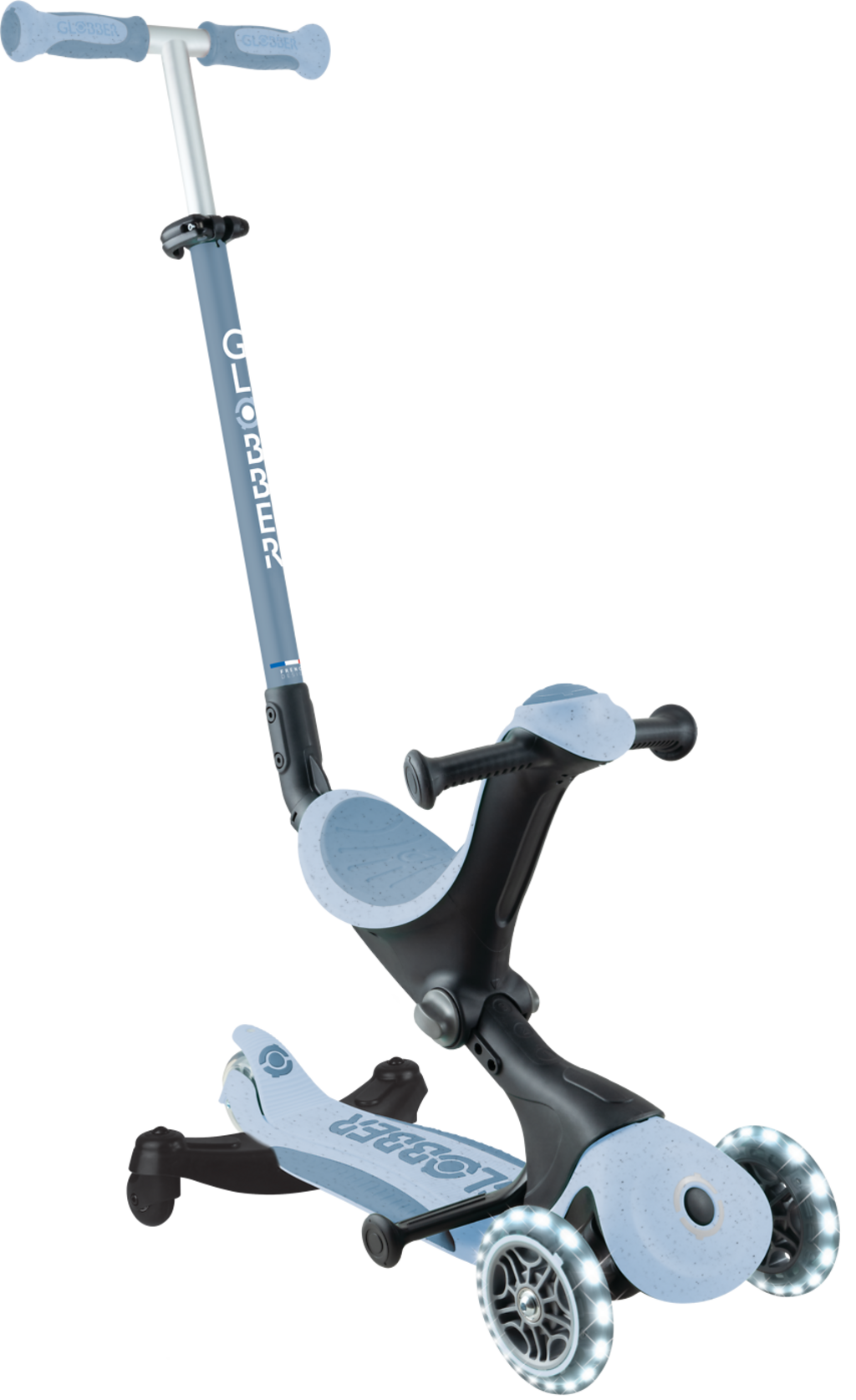 GO-UP DELUXE LIGHTS ECOLOGIC 360° je popolno vozilo 3-v-1 za male raziskovalce – od prvega poganjalca s sedežem do samostojnega skiroja. Zahvaljujoč patentiranemu 360-stopinjskemu krmiljenju za starše in preoblikovanju brez uporabe orodja se vozilo prilagodljivo prilagaja razvojni stopnji vašega otroka.