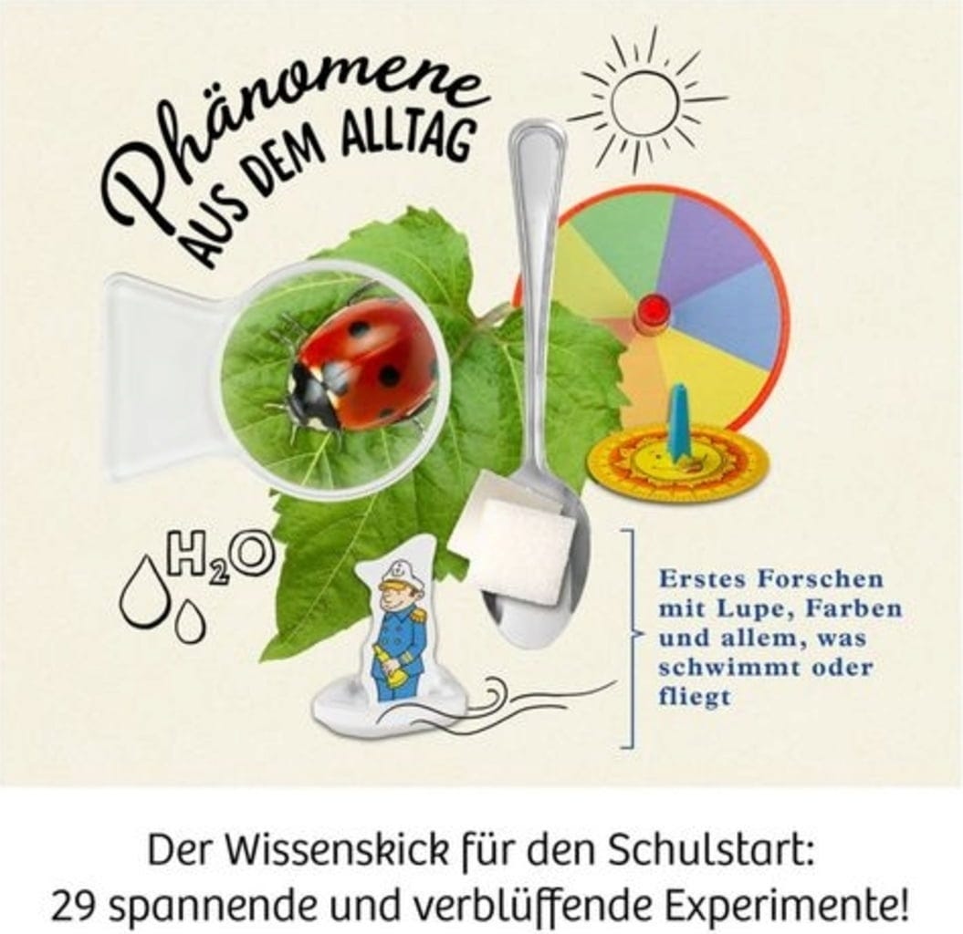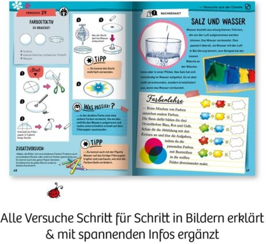 Napeti poskusi za male raziskovalce od 5. leta starosti. V 29 poskusih z različnih področij biologije, kemije in fizike se zelo natančno preučijo različni vsakdanji pojavi. Pri učenju skozi igro so vključeni vsi čuti. Ustvarja se, opazuje in odkriva. Pri tem seveda nikoli ne zmanjka zabave. Starosti primerna navodila s številnimi slikami zelo razumljivo vodijo skozi poskuse – tudi za tiste, ki še ne znajo brati.