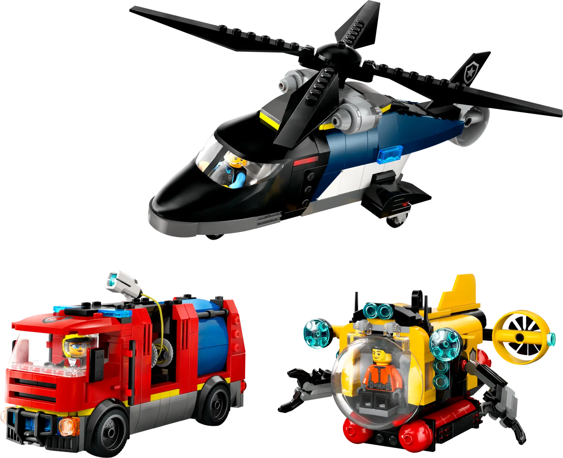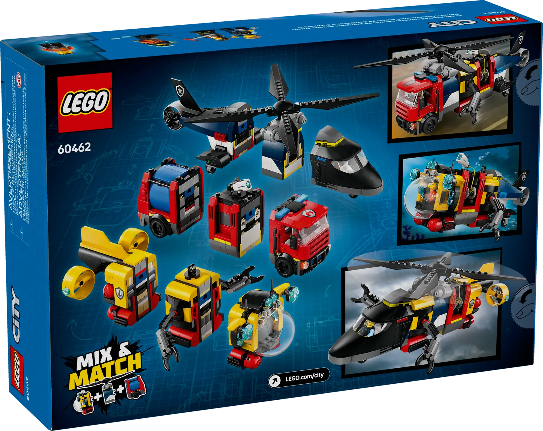 LEGO City - 60462 Remiks helikopter, gasilsko vozilo in podmornica