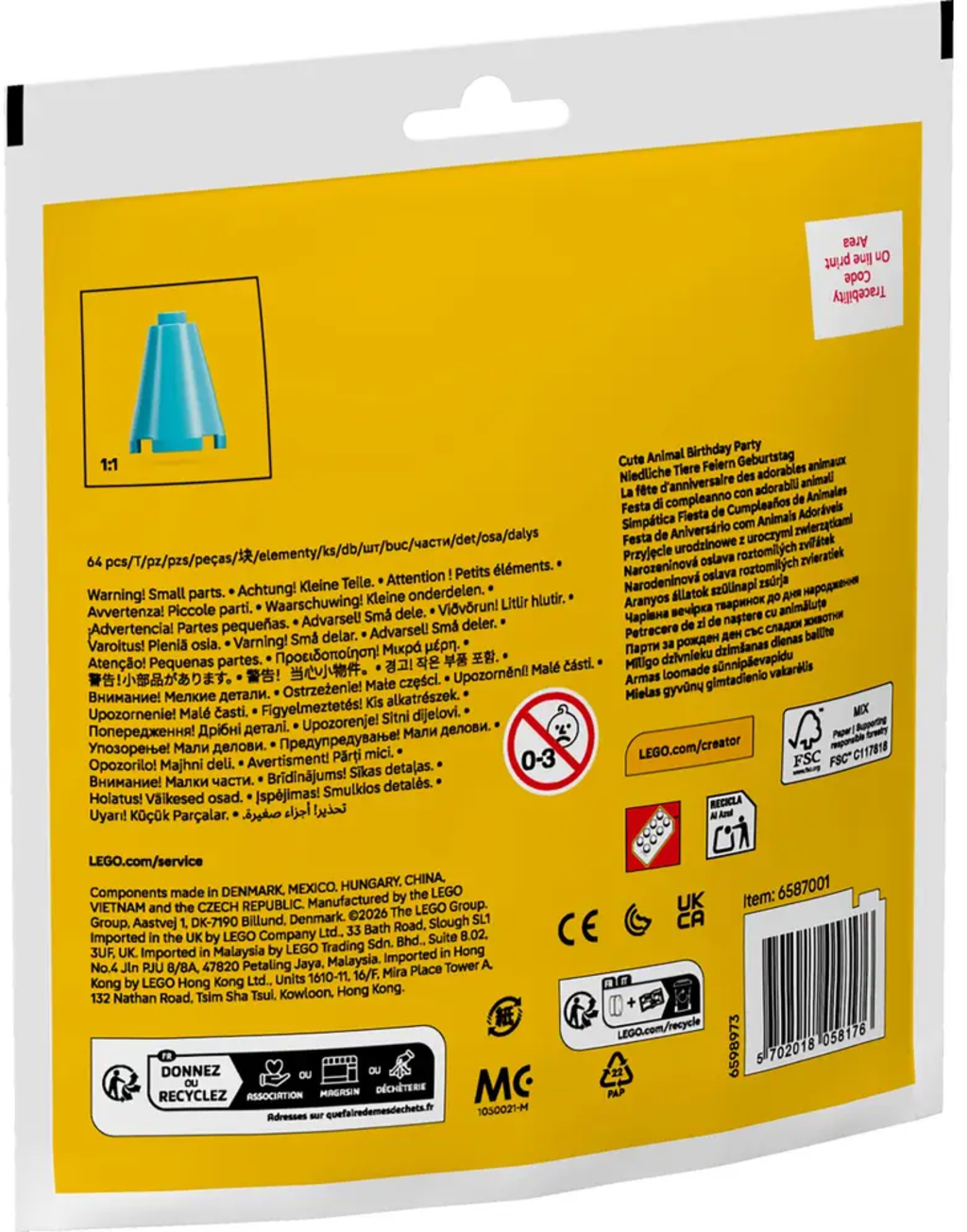 | Opozorila: | POZOR: Ni primerno za otroke mlajše od 36 mesecev. Nevarnost zadušitve zaradi majhnih delov, ki jih je mogoče pogoltniti. |