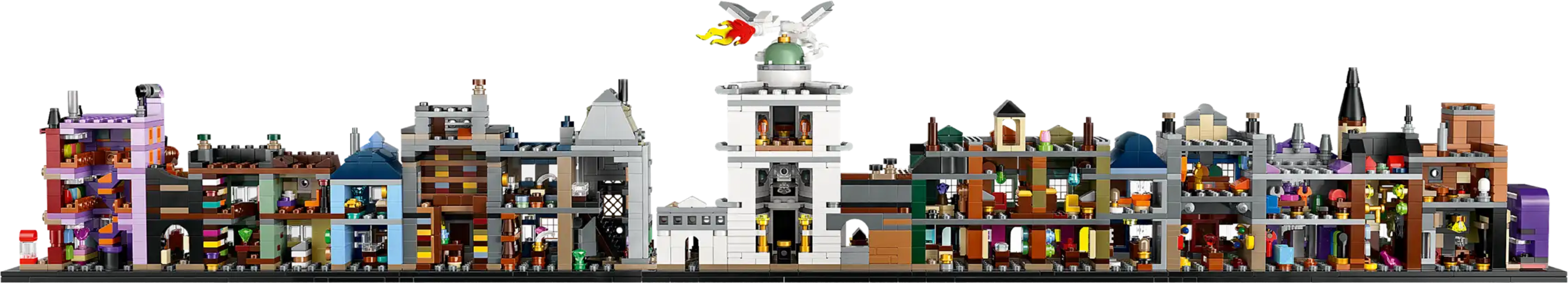 Podaj se na čarobno potovanje ustvarjanja s tem impresivnim mikro modelom Prečne ulice™. Poustvari podrobnosti znotraj in zunaj trgovin, kot so Vražje vragolije bratov Weasley™, Gringotts™, Počeni kotel in še mnoge druge. Raztegni model, da ustvariš dolgotrajno čarovniško ulico ali pa ga razdeliš v posamezne module. S 12 mikrofigurami, vključno z Harryjem Potterjem™ in Vitezom ponočnjakom™, boš dodal pravi čar na svoj razstavni prostor.