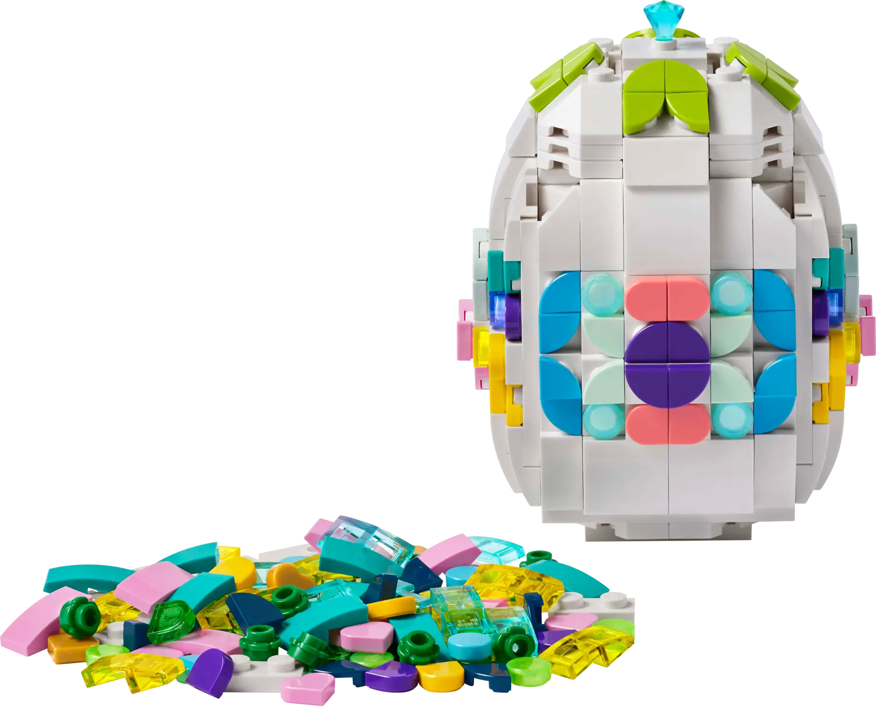 Dekorativno LEGO velikonočno jajce za otroke in oboževalce, stare 9 let in več, s prilagodljivo obliko in odstranljivim zgornjim delom. Vključuje dekorativne elemente in dodatne ploščice za preoblikovanje jajca in ustvarjanje spomladanske dekoracije.