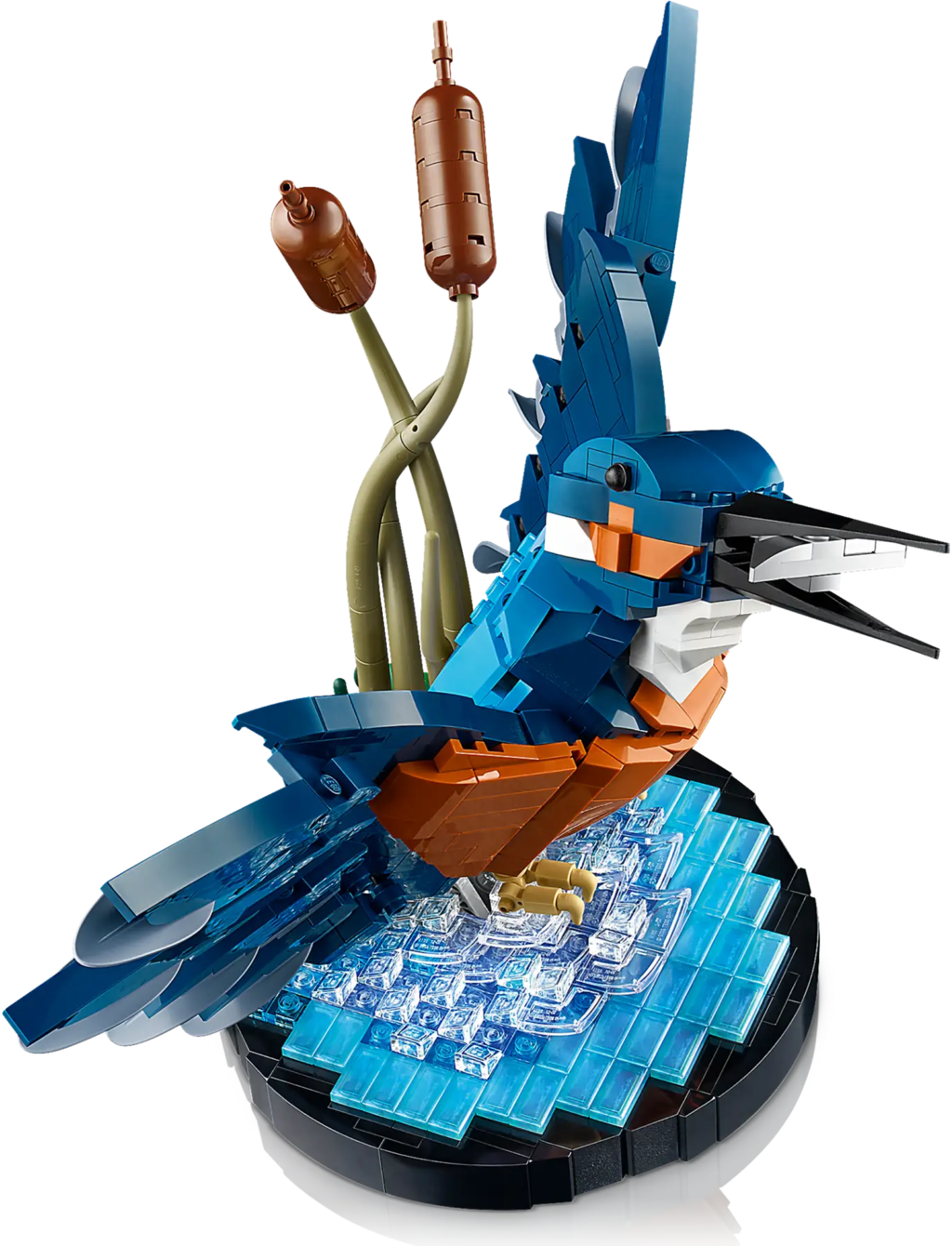 LEGO® Icons 10331 Rečni vodomec je komplet za odrasle, ki omogoča sestavljanje podrobnega modela te čudovite ptice v naravnem okolju. Zasnovan je kot okras za dom ali pisarno, ki prinaša pridih narave v vsak prostor. Komplet vključuje vse potrebne kocke za ustvarjanje rečnega vodomca z ujeto ribo in vodnim okoljem, ki služi kot stojalo. Model je opremljen z nastavljivo glavo in kremplji, kar omogoča prilagoditev poz. Komplet vsebuje 834 kock in je primeren za starost 18+. Vsebuje tudi digitalna navodila za sestavljanje v aplikaciji LEGO® Builder.