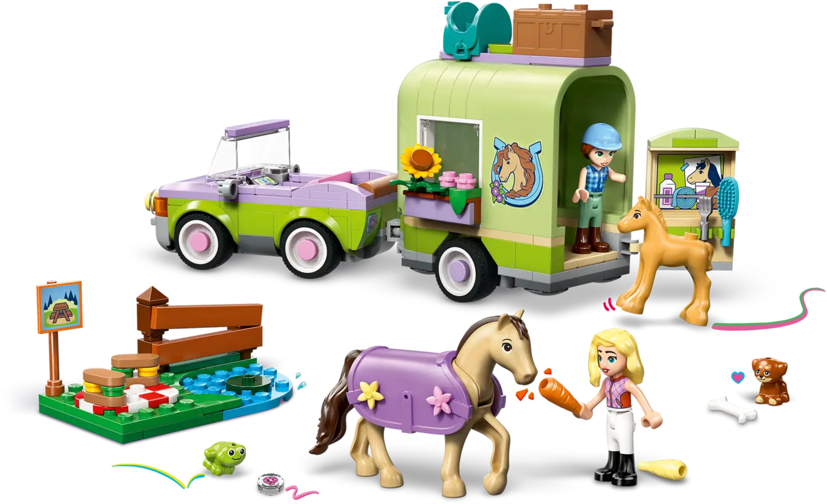 LEGO Prijatelji - 42695 Konj in žrebeta s prikolico za konje
