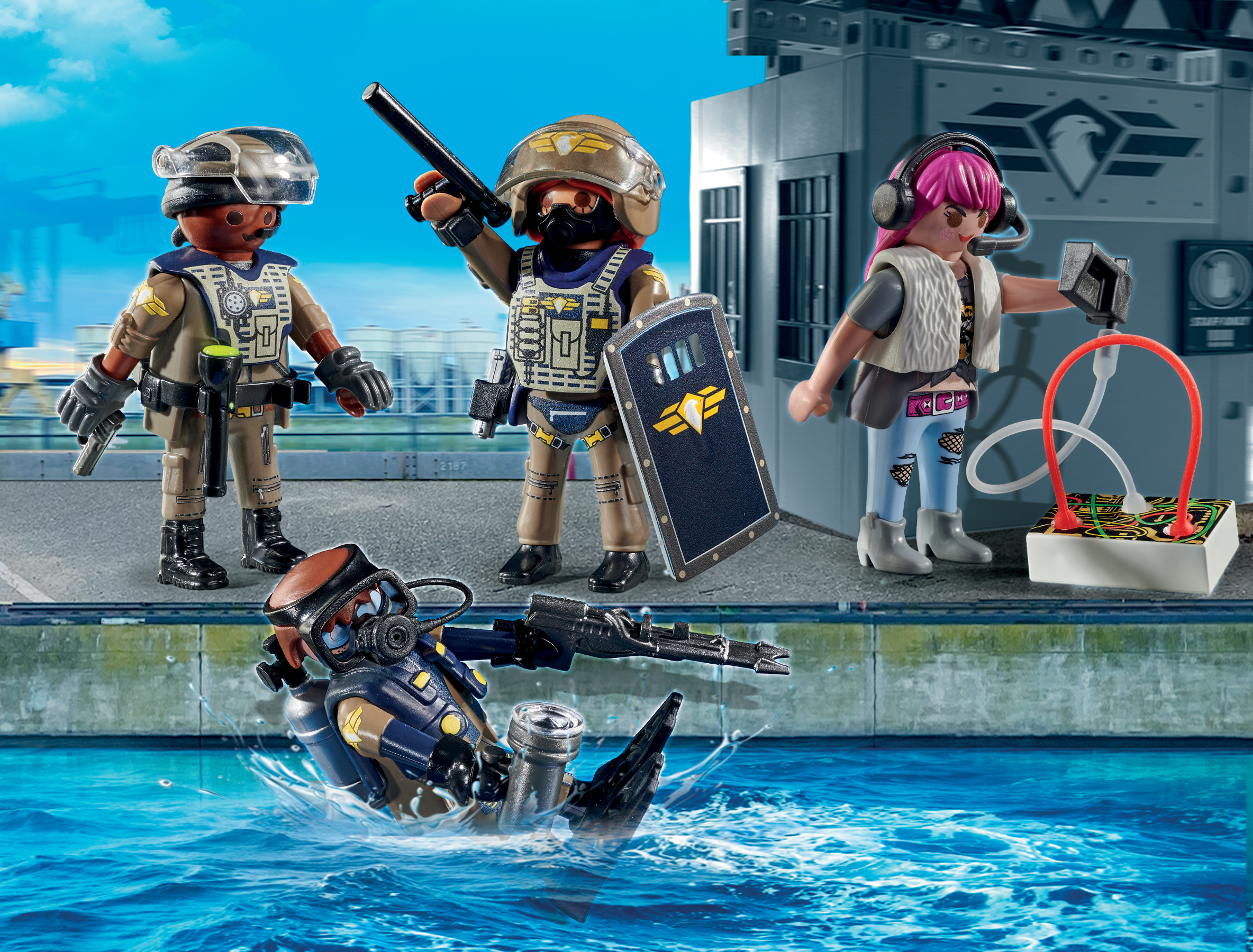 S potapljačem SWAT, pripadniki operativne enote SWAT, vodjo enote SWAT in zlobnico