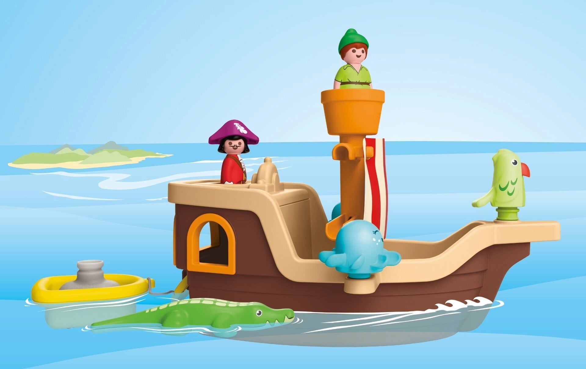 Pripravite se na zabavo v kadi s Petrom Panom in kapitanom Kljuko. Naj velika piratska ladja drsi mimo snežno belih gora pene in odkriva razburljive igralne funkcije. Papiga in dve hobotnici poskrbijo za veliko zabave zaradi funkcije brizganja.