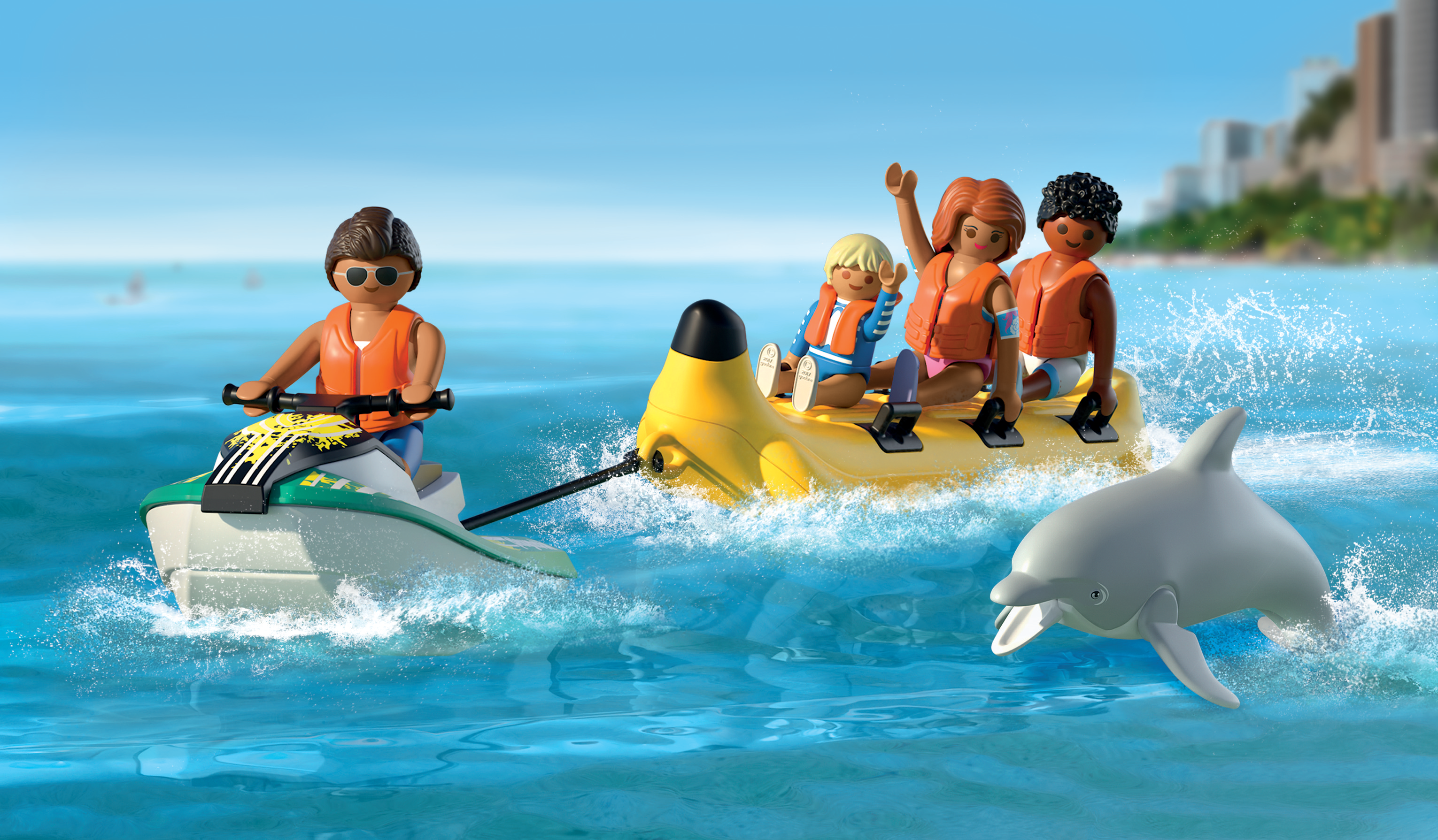 Vsebina: 1 deklica, 1 ženska, 2 moška, 1 delfin, 1 vodni skuter, 1 banana, 1 povezovalni drog, 4 rešilni jopiči