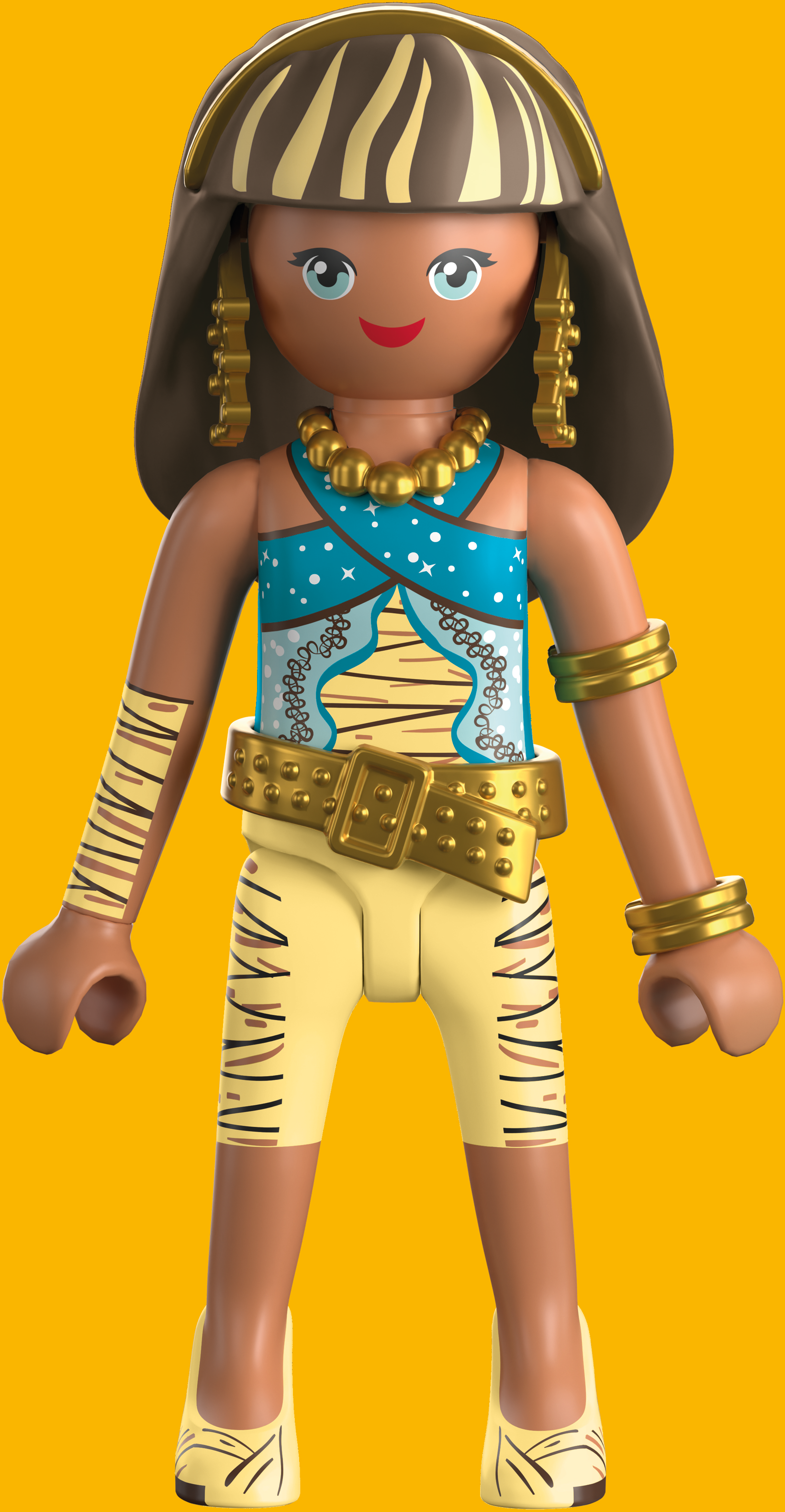 Prihaja Cleo De Nile, nesporna kraljica Monster High™, zdaj kot glamurozna figurica PLAYMOBIL. Navdušuje s svojim nezamenljivim videzom, odlikujejo jo kraljevski pasovi, elegantno zaključeni z zlatimi poudarki. Kot pravi modni statement nosi ujemajočo se, elegantno torbico, ki popolnoma dopolni njen videz. Zahvaljujoč preizkušenemu modularnemu sistemu PLAYMOBIL lahko premikate njene roke in noge ter jo postavljate v dramatične, kraljevske položaje.