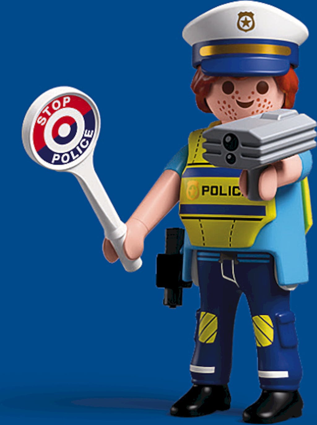Dodatki: 1 policijska kapa, 1 veslo, 1 pištola, 1 tok za orožje, 1 radar, 1 prometni znak, 1 živa meja