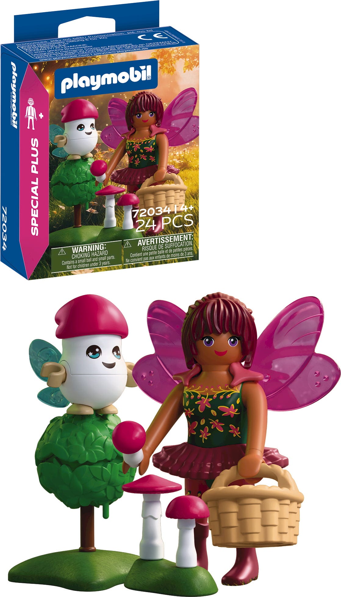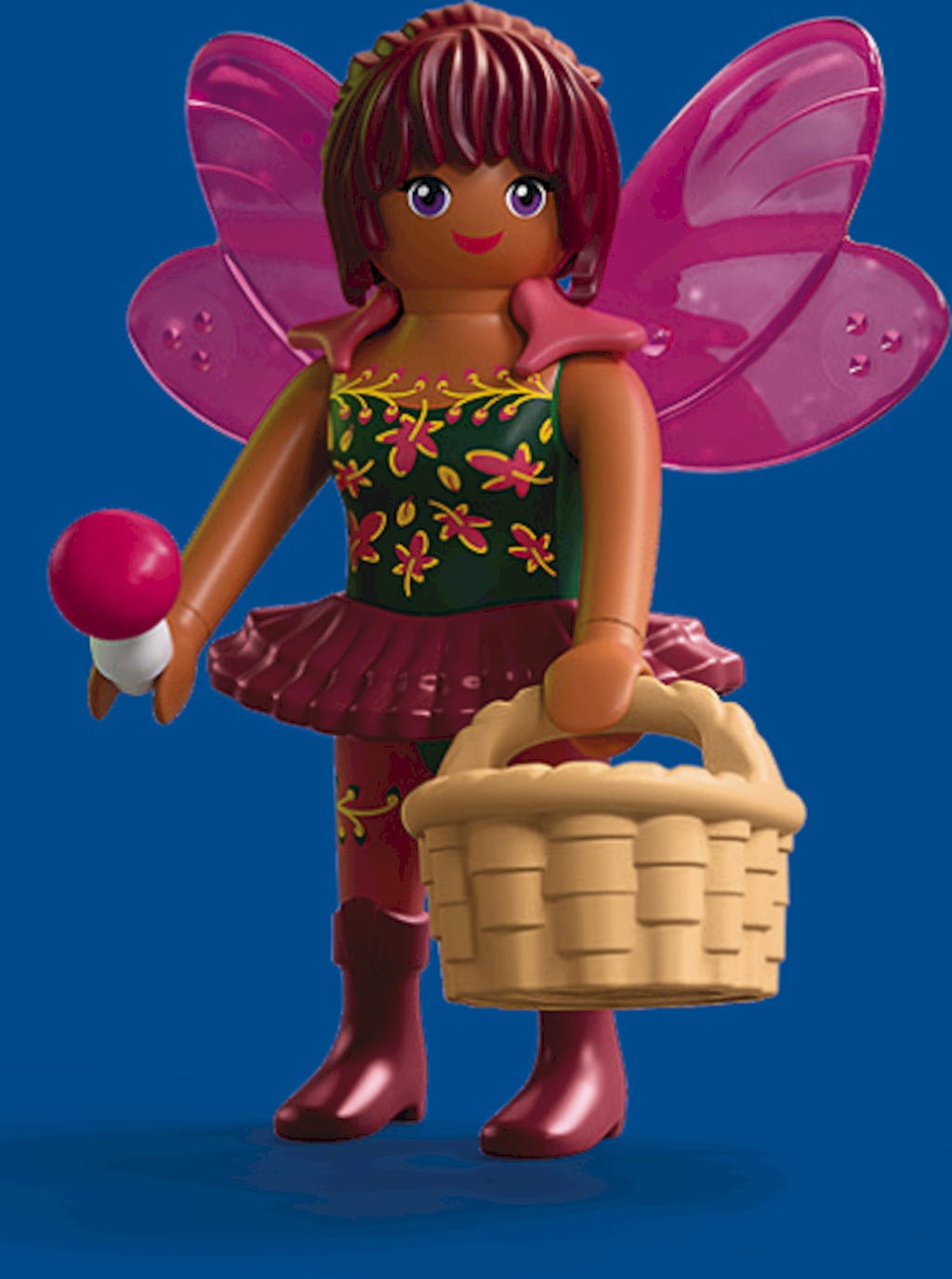 Dodatki: 1 ovratnik, 1 vilinska krila, 1 košara, 1 klobuk, 1 majhna krila, 1 majhno drevo, 3 gobe