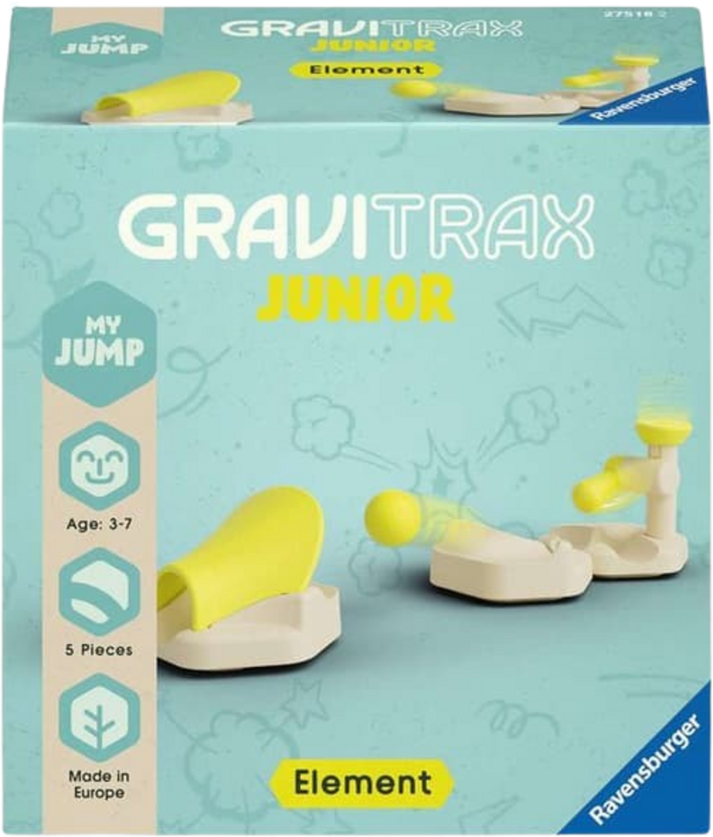 Dodajte nekaj vznemirjenja prvi progi za frnikole! Z GraviTrax Junior Element Jump bodo otroci, stari 3 leta in več, doživeli vznemirljivo akcijo, saj frnikola praktično leti po zraku. Ta element je prava paša za oči na vsaki progi in zagotavlja navdušenje, ko frnikola premaga skok.