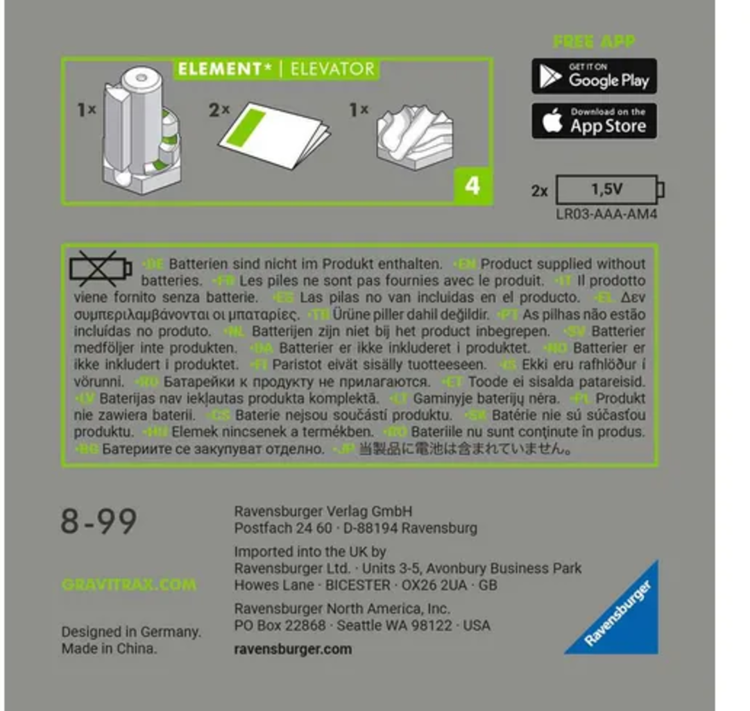 Izkušnenj v jeziku slovenščina za izdelek Ravensburger GraviTrax POWER - Element Elevator, razširitveni set