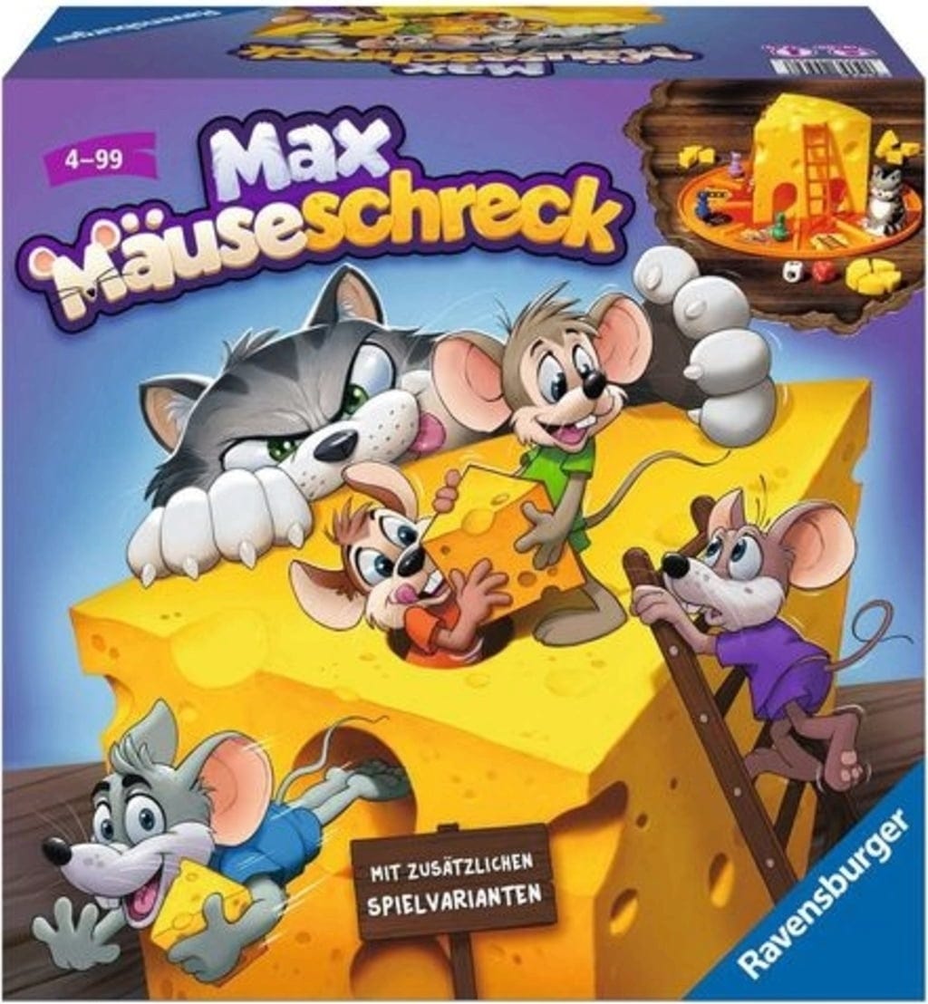 Max Mäuseschreck je razgibana namizna igra s kocko in premikanjem, ki je zaradi preprostih pravil primerna že za otroke od 4. leta naprej. Osrednji del igralne plošče je velik sir, skozi katerega lahko zdrsnejo miške. Kje pa bodo pristale, je prepuščeno naključju – in kdor ima smolo, izgubi celo vse zbrane kose sira!
