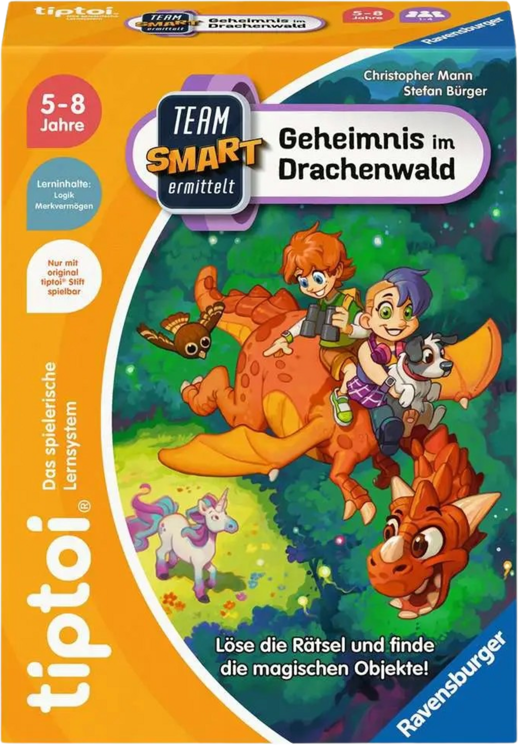 Kooperativna detektivska igra za otroke, stare 5 let in več, ki jo je pripravil tiptoi®. Podprite ekipo SMART pri njihovih razburljivih preiskavah v čarobnem zmajevem gozdu in rešujte zapletene uganke.