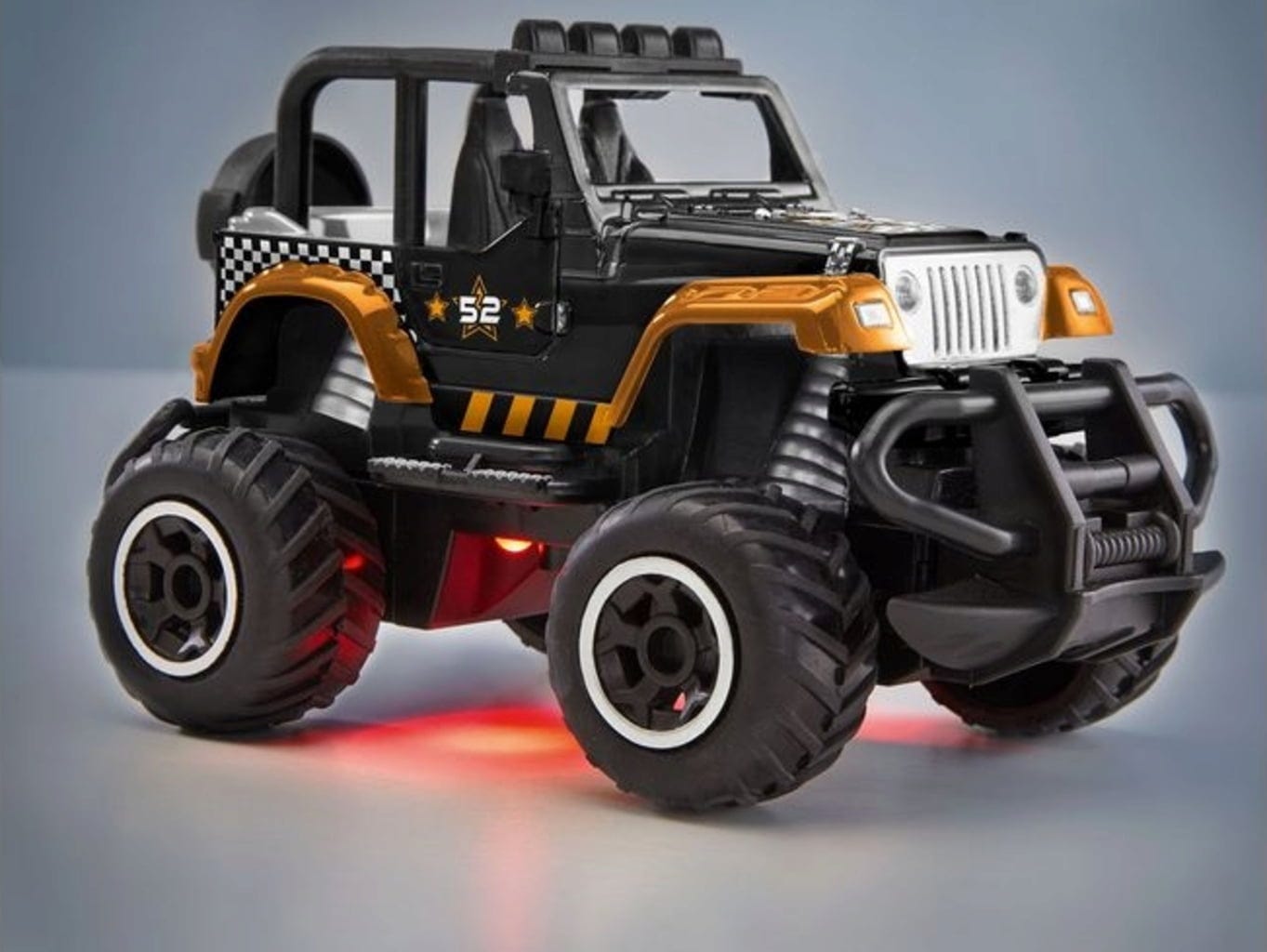 Quarter Back v dizajnu nogometnega dresa z dodatnim airbrushem dirkaške zastave izgleda odlično. Tudi v temi je zahvaljujoč LED osvetlitvi podvozja videti res kul. S priročnim 2CH MHz daljinskim upravljalnikom ga je mogoče natančno upravljati in osvajati neskončna prostranstva parketa.