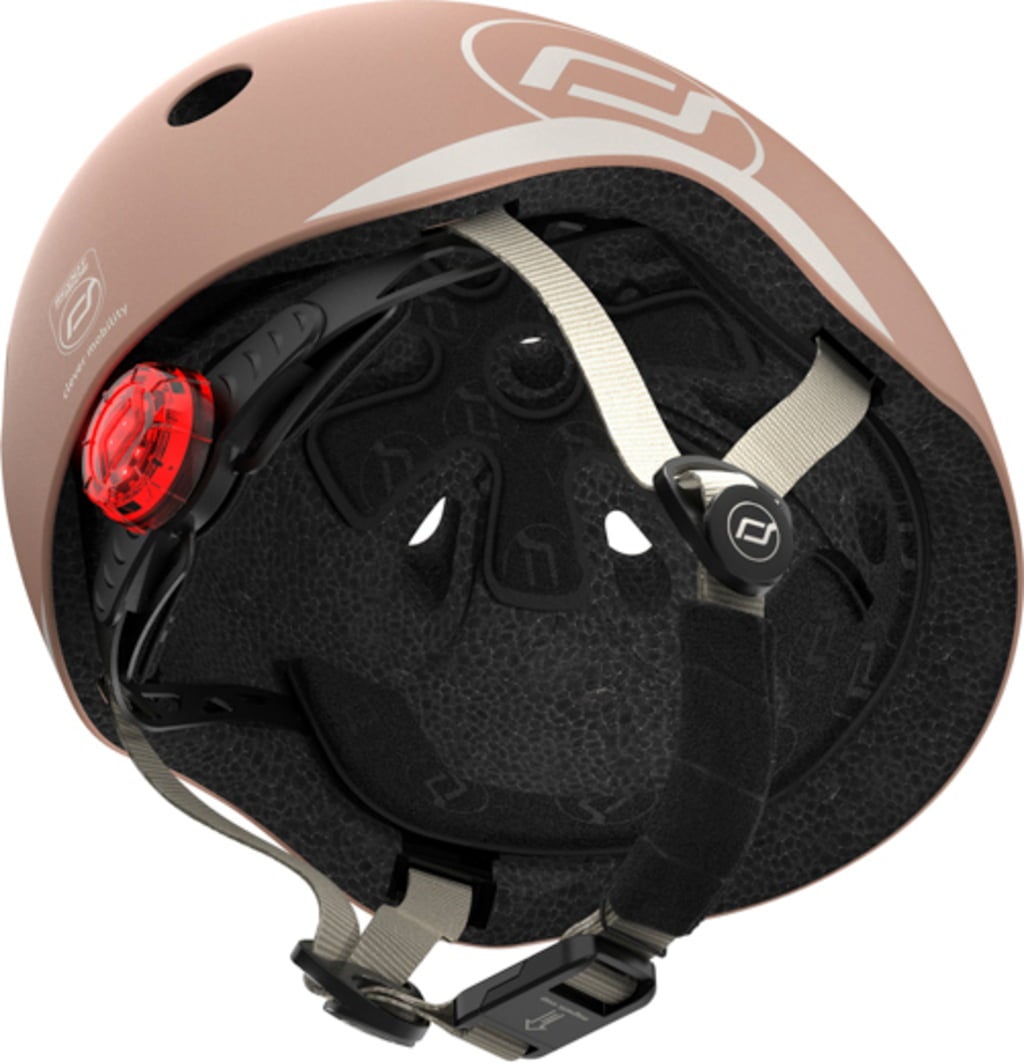 Otroška čelada Scoot and Ride v velikosti S se zaradi brezstopenjskega sistema za nastavitev velikosti na zadnji strani glave popolnoma prilagodi obsegu otrokove glave (51-55 cm), kar zagotavlja varno prileganje ves čas. Vgrajena baterijsko delujoča LED-lučka na nastavitvenem kolescu poveča vidljivost v mraku ali pri slabi svetlobi - za večjo varnost na cesti.