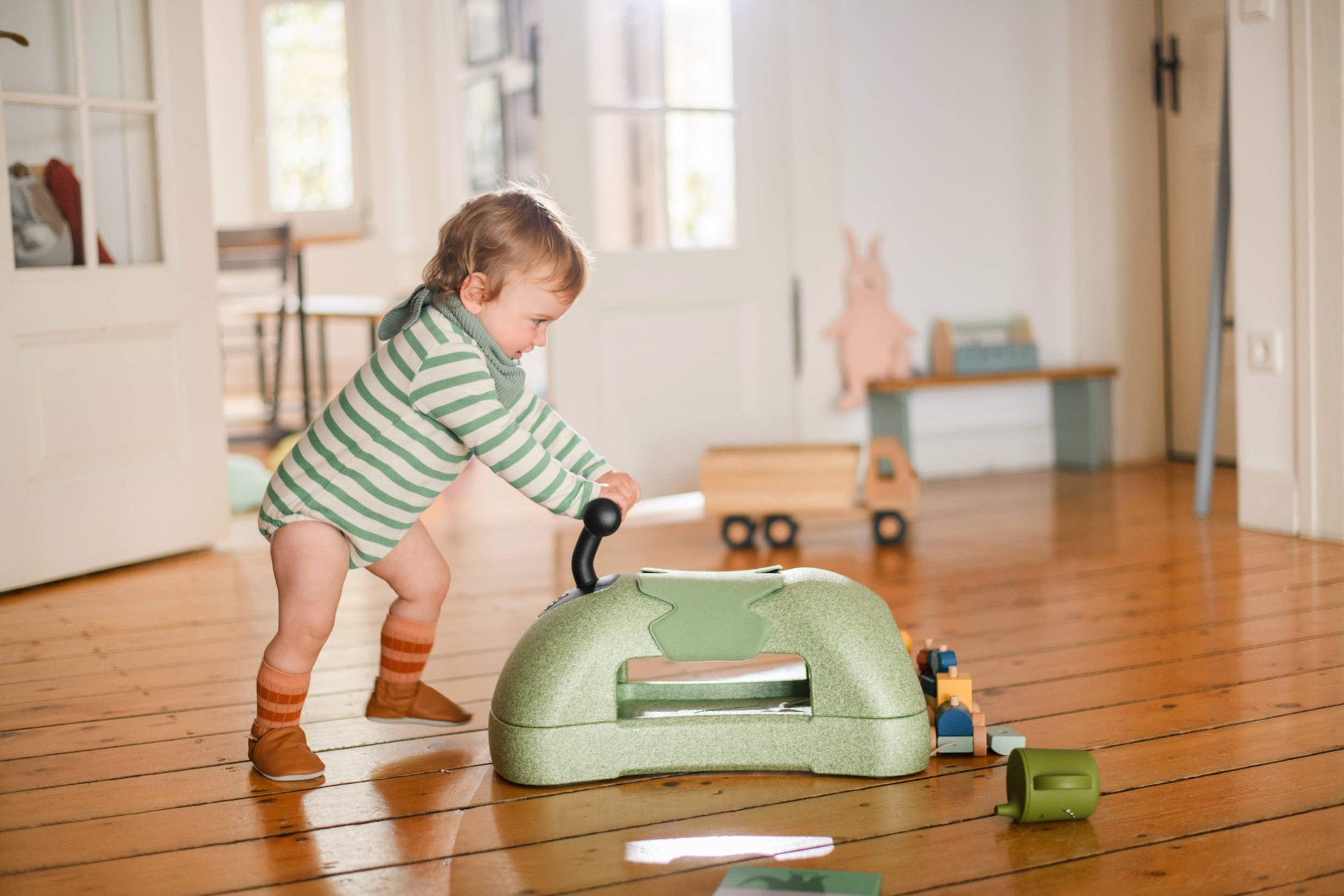 - Kreativnost: Spodnji del oziroma podvozje se lahko uporablja tudi samostojno. Bodisi za sedenje, ležanje ali potiskanje – domišljija pri igri ne pozna meja.
