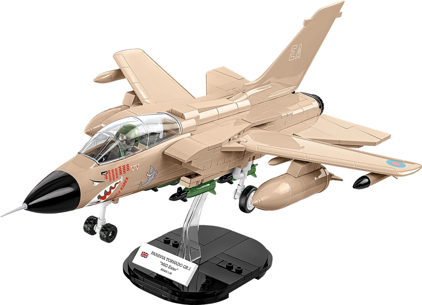 Dve priloženi figurici pilota lahko namestite v odpirajočo se kabino, medtem ko vam odstranljivo podvozje omogoča, da se odločite, ali boste sredi letalskega manevra ali pa boste Tornado ponosno razstavili na priloženem razstavnem stojalu.