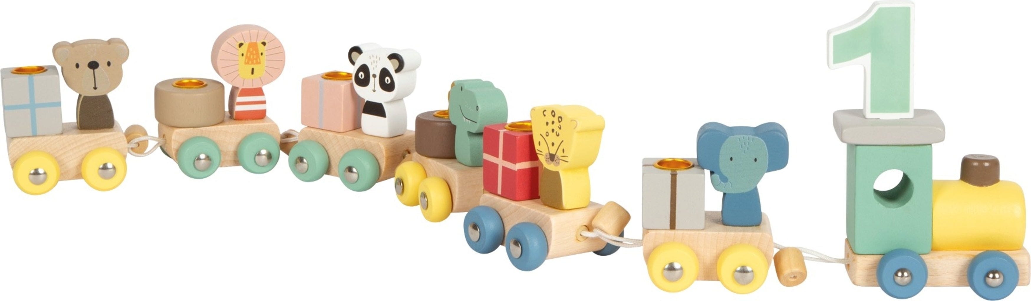 Z rojstnodnevnim vlakom z živalmi je vsaka otroška rojstnodnevna zabava posebno doživetje. Z gibajočo se lokomotivo, barvitimi živalskimi vagoni in številkami lahko otroci igrivo predstavijo svojo rojstnodnevno številko. Robustno izdelan in zasnovan z mislijo na otroke je vlakec primeren tako za dekoracijo kot za igro - darilo, ki vsako leto prinese veselje.