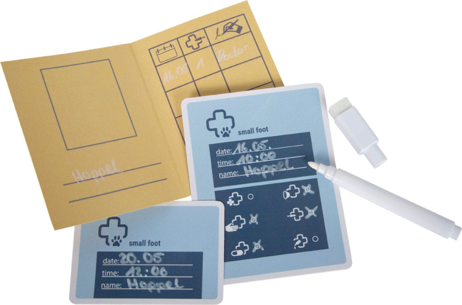 Z veterinarsko torbo in plišastim zajčkom lahko mali veterinarji takoj začnejo z delom - doma ali na poti. Torba za prenašanje služi tudi kot transportna škatla in zdravniška torba. Zahvaljujoč obsežni opremi, rentgenski tablici in karticam za pisanje se lahko izvajajo domiselne igre vlog o zdravju živali. Empatija, občutek odgovornosti in fine motorične sposobnosti se z igro igrivo spodbujajo - komplet, pripravljen za igro, za nadobudne mlade veterinarje!