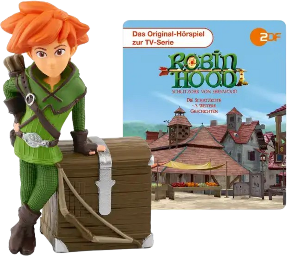 Ste pripravljeni, da se pridružite boju proti krivici? S to avdio figuro boste doživeli vznemirljive dogodivščine z Robinom Hoodom! Desetletni Robin je mojster loka in puščic ter s svojo duhovitostjo vedno znova prelisiči bogate in mogočne. Njegov cilj: narediti konec mlademu princu Johnu in njegovi hudobni tolpi, ki s svojo krutostjo in hudobnostjo zatirata prebivalce Sherwoodskega gozda.