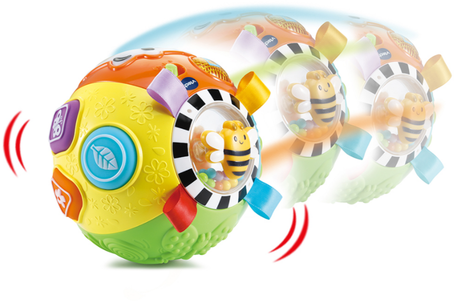 VTech Baby Interaktivna žoga otroke razgibava in igrivo spodbuja njihova čutila. Z različnimi igralnimi površinami, zabavnimi gumbi, svetlobnimi efekti in hrupnimi zvoki spodbuja motorični in senzorični razvoj.