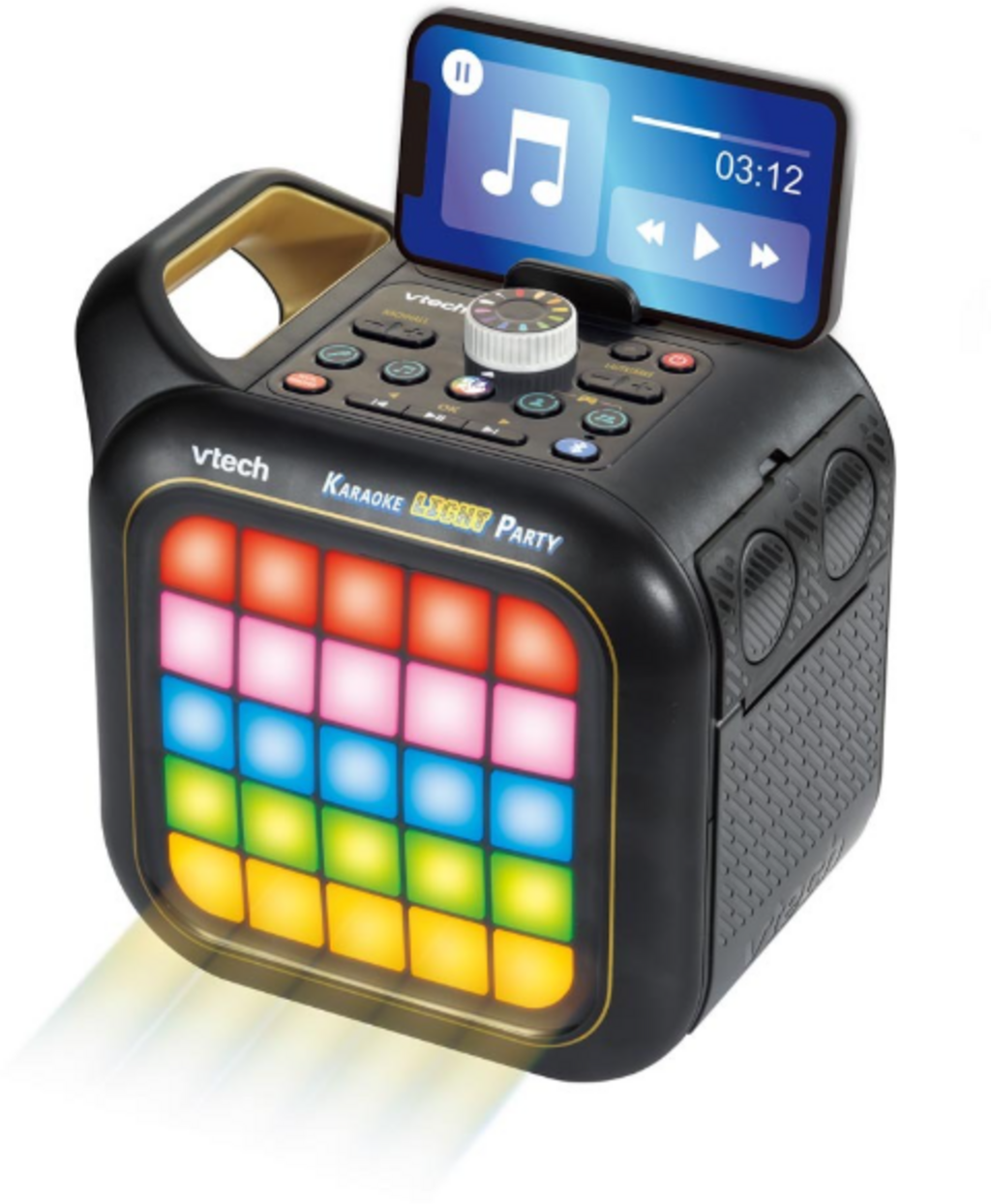 VTech Karaoke Light Party spremeni vsako otroško sobo v interaktivni oder. Otroci, stari 6 let in več, lahko s pomočjo dveh brezžičnih mikrofonov, svetlobne predstave, RGB svetlobnih gumbov in povezave Bluetooth izvajajo svoje najljubše pesmi, predvajajo svojo glasbo in ustvarjajo domiselno slikovno umetnost. To združuje glasbeno zabavo z gibanjem, igro in ustvarjalnostjo – idealno za zabave ali veselo glasbeno popoldne.