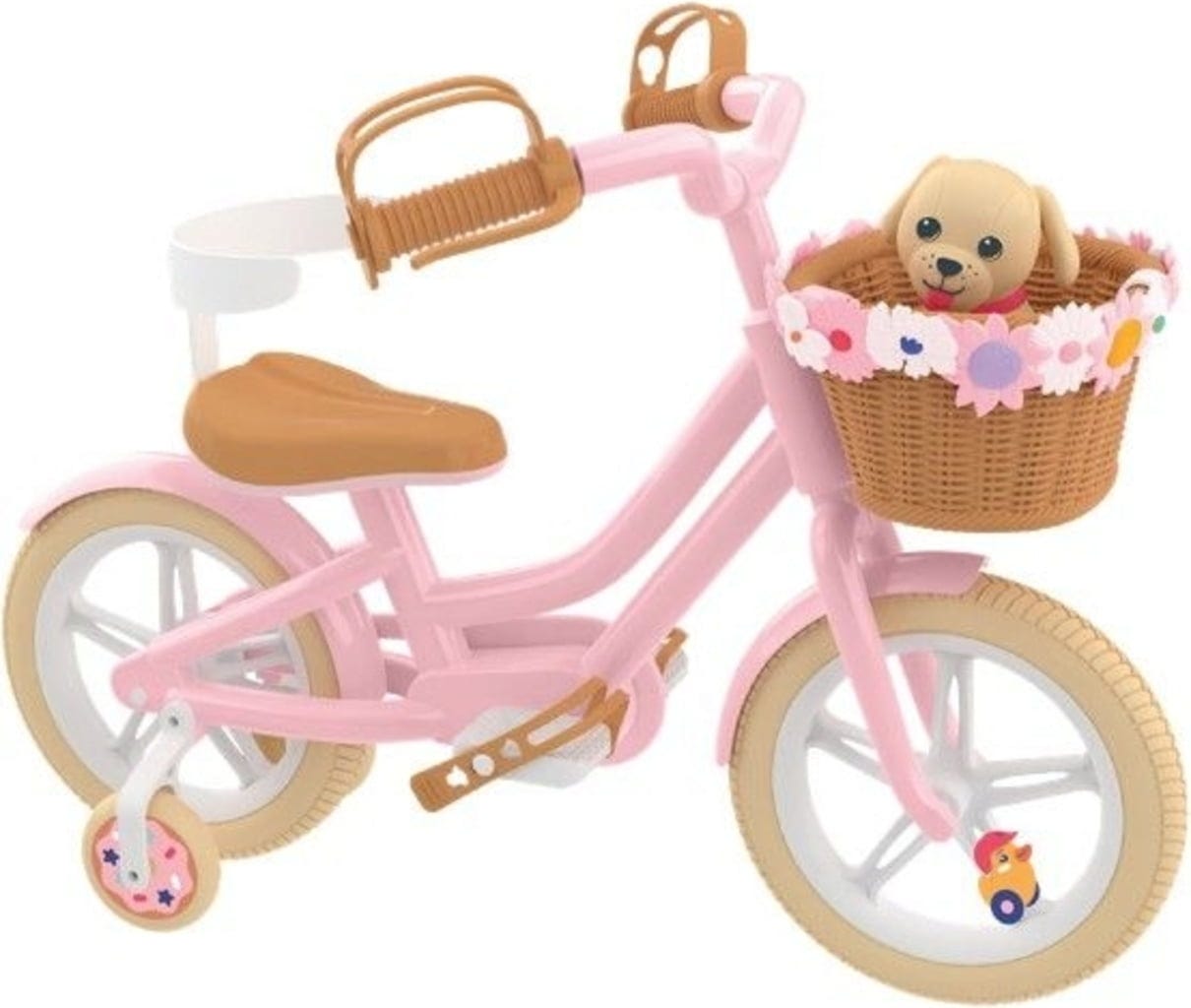 To roza kolo omogoča najljubši lutki razburljivo pustolovščino. Po zaslugi premišljenih zank na krmilu in pedalih ter stabilnega držala na sedežu ostane lutka varno na svojem mestu tudi med hitrimi vožnjami. Spredaj v snemljivi košari ima svoje stalno mesto zvesti kuža Lucky. Skrbno izdelani detajli, kot so pomožna kolesa v obliki krofov in majhna račka Berta v sprednjem kolesu, privabljajo navdušene poglede. Višinsko nastavljivo krmilo omogoča popolno prilagoditev 36 cm ali 43 cm velikim lutkam. S priloženimi nalepkami lahko otroci uresničijo svoje individualne ideje za okraševanje.